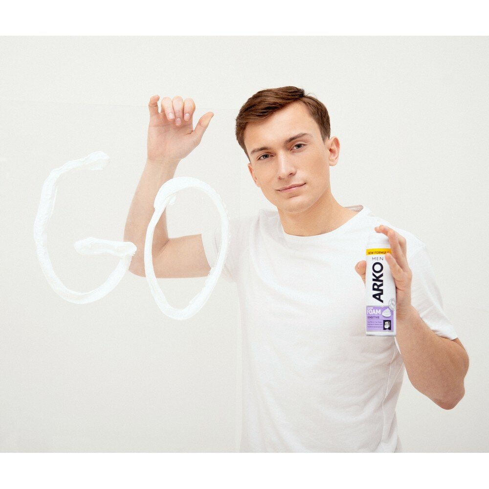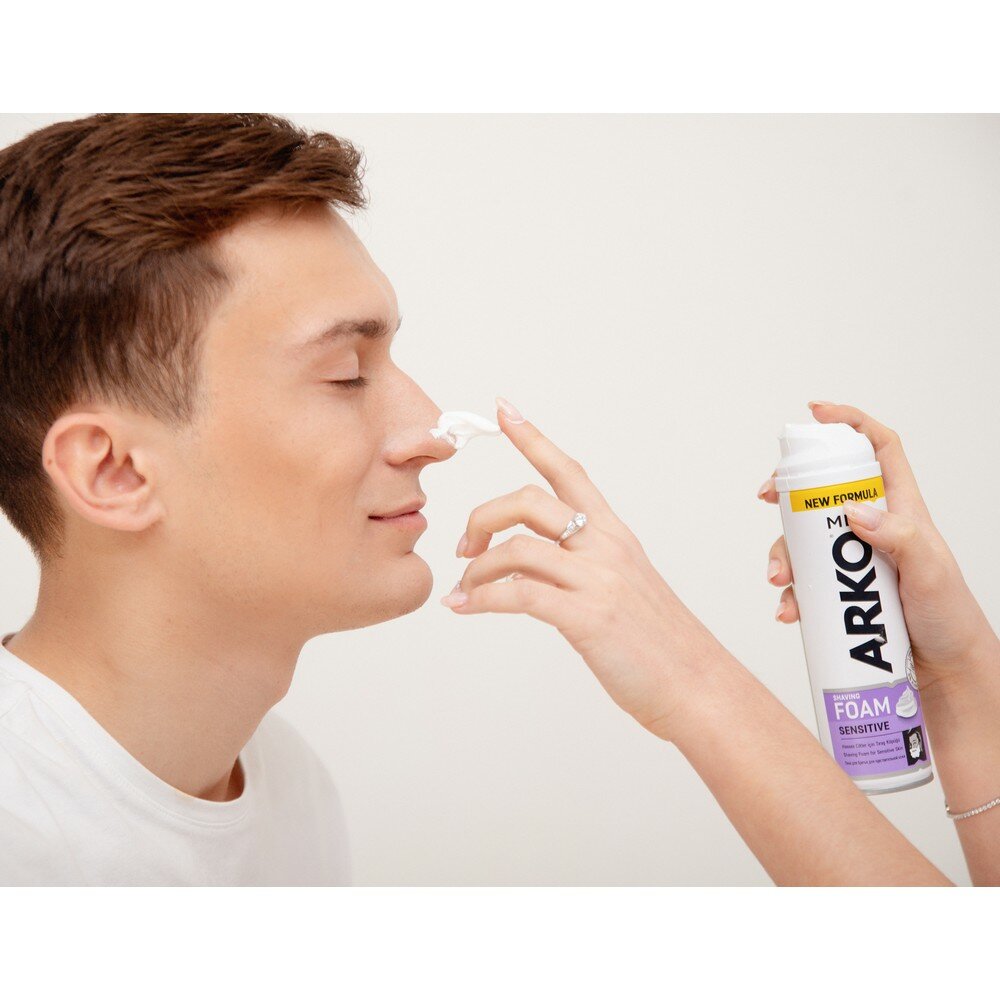 Пена для бритья ARKO Men Sensitive для чувствительной кожи уменьшает риск раздражения и жжения кожи благодаря формуле с алоэ вера и маслом лаванды.