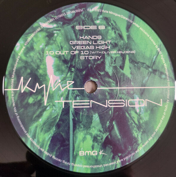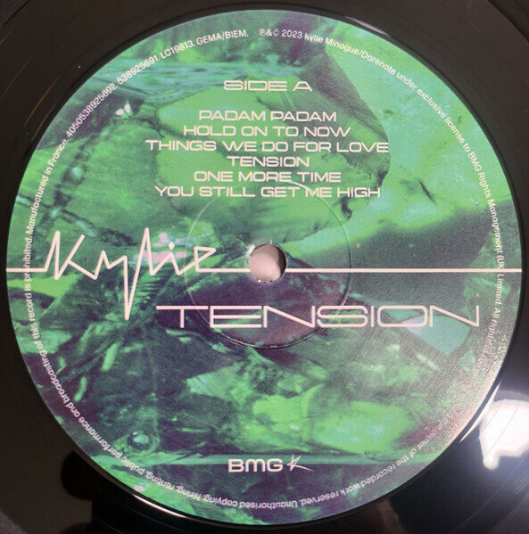 Tension - шестнадцатый студийный альбом австралийской певицы Кайли Миноуг, выпущенный в 2023 году. Он не имеет центральной темы, но включает в себя разнообразные жанры электронной танцевальной музыки, такие как синти-поп, диско, фанк, хаус и EDM. Альбом наполнен энергичными и взрывными танцевальными хитами и яркими поп-композициями. К примеру, завораживающая электро-песня Padam Padam, которая открывает альбом. Или 10 Out Of 10, сделанная вместе с известным голландским продюсером Оливером Хелденсом. Релиз достиг первого места в чартах Австралии, Шотландии, Великобритании и США. Издание представлено на черном виниле.