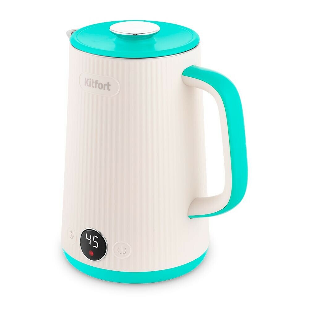 | Прочие особенности и свойства | Электрический чайник с электронным терморегулятором Kitfort КТ-6197-2 может не только вскипятить воду, но и нагреть её до температур: 45, 55, 65, 75 и 85°С. , На дисплее отображается текущая температура воды в чайнике. |
