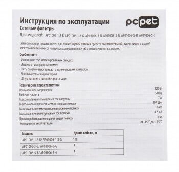 Сервис сравнения цен СкидкаГИД предлагает сравнить цены на товар «Сетевые фильтры разветвители PC PET AP01006-1.8-G (серый)»