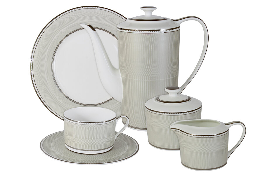 | Состав набора | блюдце - 6 шт.; десертная тарелка - 6 шт.; заварочный чайник - 1 шт.; молочник - 1 шт.; сахарница - 1 шт.; чашка - 6 шт. |
