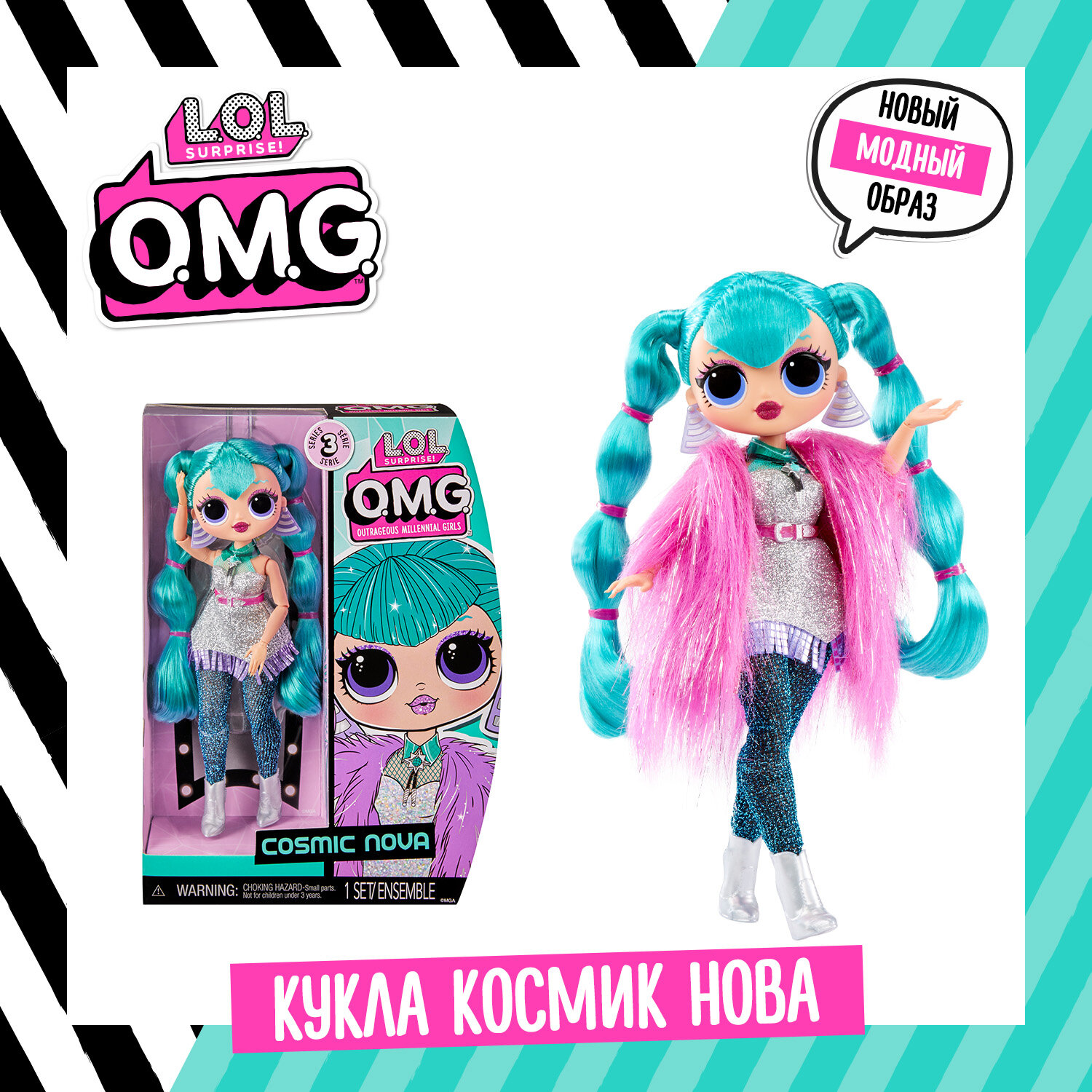 Кукла LOL Suprise OMG Groovy Babe - ЛОЛ ОМГ Груви Бейб (перевыпуск) 588573 Перевыпуск популярной куклы - L. O. L. Сюрприз! O. M. G. модная кукла Груви Бейби - черно - белая модница! (ранее кукла выпускалась в одной из первых серий ОМГ LOL OMG Lights 2020 и светилась в темноте со специальным фонариком). У нее потрясающие черты лица, уложенные волосы, собственный гламурный наряд, и она готова к множеству возможностей позировать. При распаковке вас ждет множество сюрпризов: в том числе модную куклу, модные аксессуары, обувь, расческу и подставку для куклы. Соберите все 3 любимых фанатами переиздания L. O. L. Surprise! O. M. G. fashion dolls: Cosmic Nova, Groovy Babe и Speedster. Особенности упаковки: кукла не светится в темноте, коробка с прозрачным окошком, что позволяет избежать неприятностей с браком макияжа куклы.