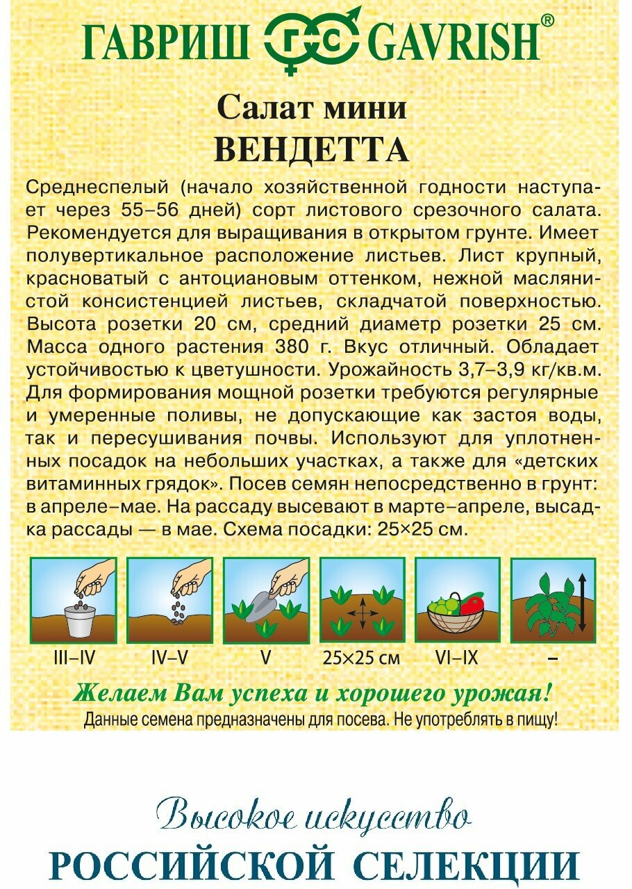 На сегодняшний день товар «Салат мини Вендетта 5 г красный Н9 Гавриш» можно купить с кешбеком в 1 магазине: Яндекс.Маркет