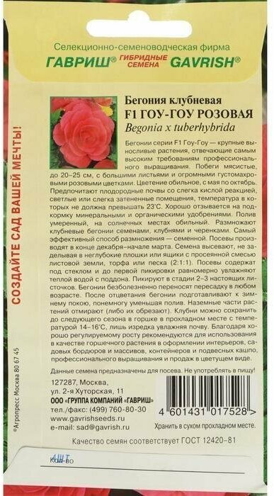 На сегодняшний день товар «Бегония Гоу-гоу розовая F1 Гавриш Утконос Семена Гавриш Бегония Гоу-гоу розовая F1 клубневая 4 штуки пробирка» можно купить с кешбеком в 1 магазине: Яндекс.Маркет