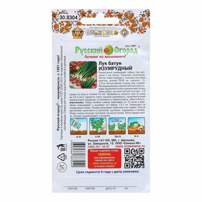 Модель: Семена Лук батун Русский Огород Изумрудный 1г