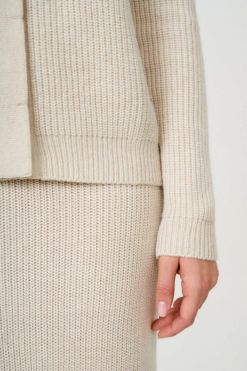 Кардиган выполнен из плотного вязаного трикотажа с мягкой основой. Полиамид в составе материала делает его прочнее, благодаря чему модель дольше сохраняет аккуратный внешний вид. Обратите внимание: чтобы изделие радовало вас своим качеством, стирайте его в бережном или ручном режиме при температуре не выше 30 градусов.