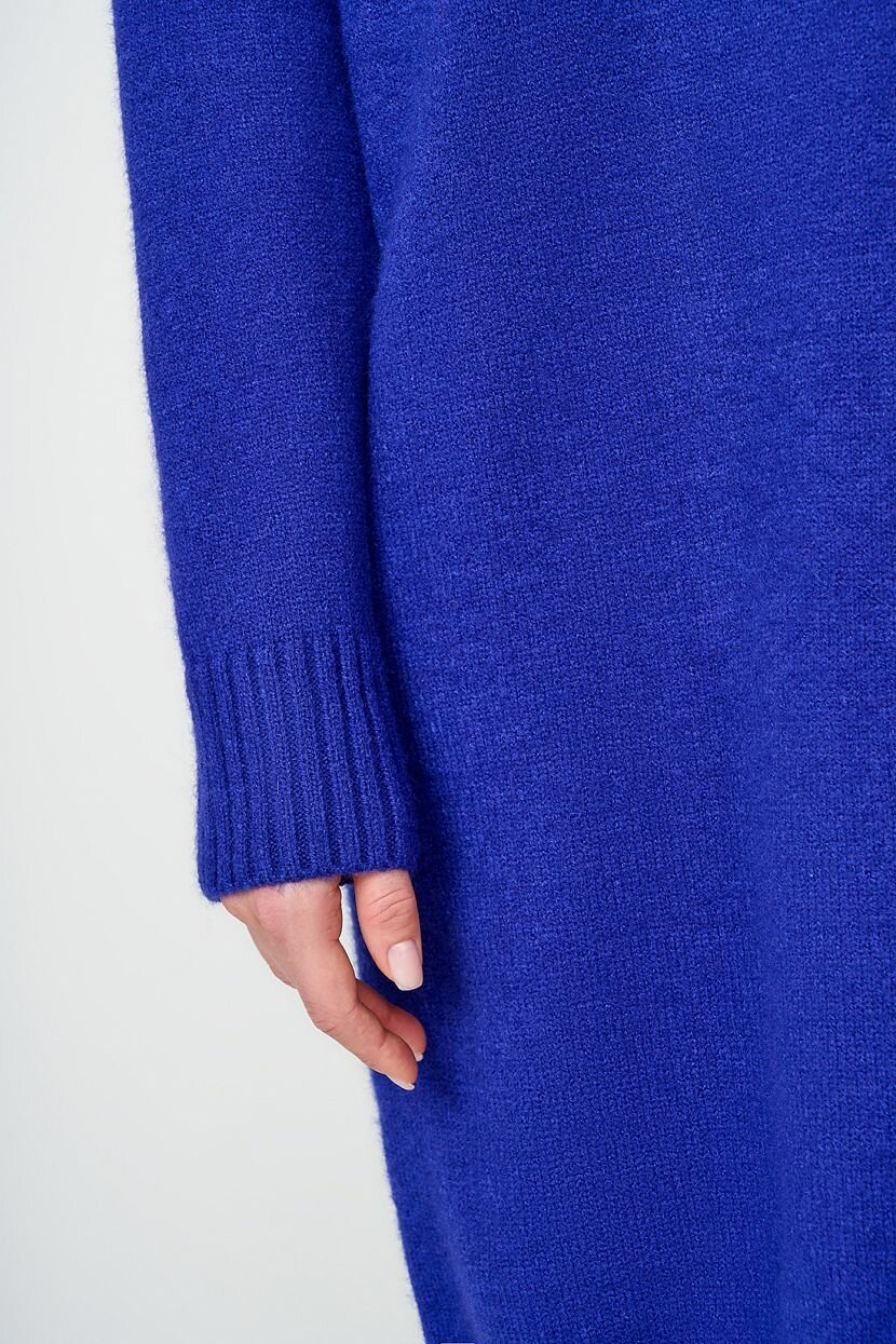 Платье выполнено из плотного вязаного трикотажа. Волокна PBT отвечают за объём и особую мягкость, а также минимизируют пилингацию (препятствуют образование катышков). Добавление полиамида делает трикотаж прочнее, благодаря чему модель дольше сохраняет аккуратный внешний вид. Обратите внимание: чтобы изделие радовало вас своим качеством, стирайте платье в бережном или ручном режиме при температуре не выше 30 градусов.