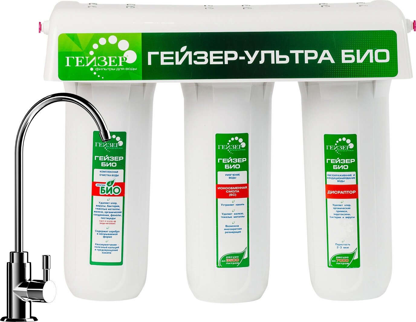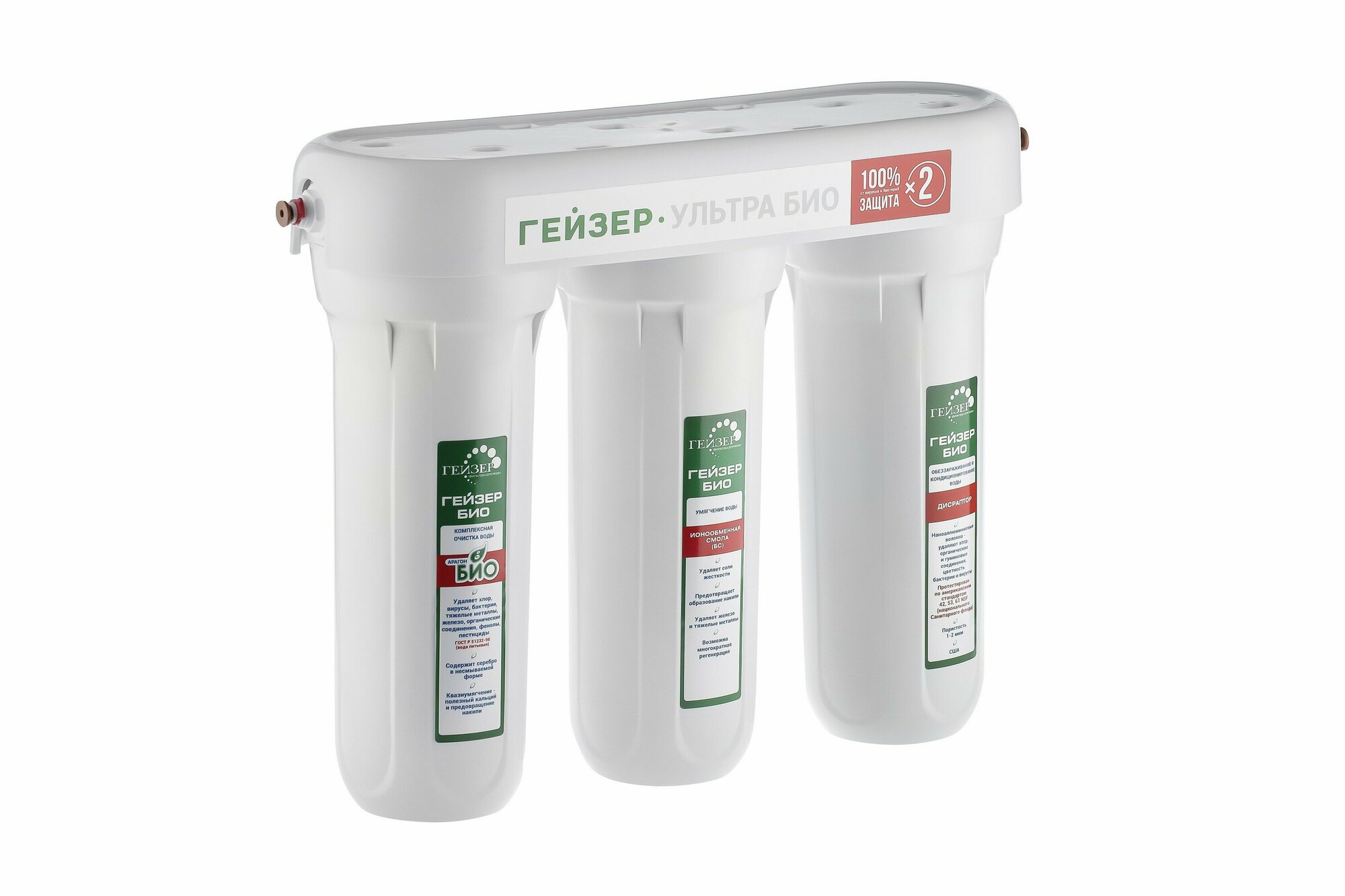 Фильтр трехступенчатый для сверхжесткой водопроводной воды. Комплексная очистка и двойной ресурс по удалению солей жесткости, бактерий и вирусов.( в т.ч. взвешенных частиц, вредных примесей: хлора, тяжелых и радиоактивных металлов, избытка солей жесткостей, органических и хлорорганических соединений. 100% очистка от бактерий и вирусов. Воду после фильтров серии БИО можно пить без кипячения. В комплекте: фильтр, кран чистой воды модель №6 и все, что нужно для установки.