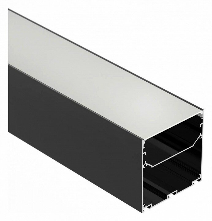 Алюминиевый профиль для светодиодных лент и линеек. Цвет - чёрный RAL9005 (порошковая окраска). Габаритные размеры (L×W×H): 2500x75x75 мм. Ширина площадки для ленты 50 мм. Отсек для БП 72,5х33,3 мм. Экраны, заглушки и другие аксессуары приобретаются отдельно. Цена за 1 метр.