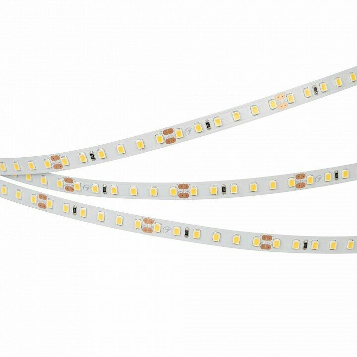 Светодиодная лента шириной 8 мм и мощностью 14.4 Вт/м с индексом цветопередачи CRI>90. Светодиоды SMD 2835 (120 шт/м) теплого белого цвета свечения (2700 К). Напряжение питания 24 В. Минимальный отрезок 50 мм (6 светодиодов). Для декоративной подсветки интерьеров, потолочных ниш, а также подсветки рекламных конструкций и витрин. Обязательна установка на алюминиевый профиль.