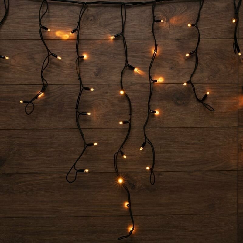 Гирлянда Айсикл (Бахрома) представляет собой гибкий горизонтальный шнур-шину, к которому через определенные промежутки крепятся вертикальные нити разной длины со светодиодами. Гирлянда имитирует сосульки и может послужить оригинальным решением при украшении карнизов, арок, фасадов зданий, витрин магазинов, а также стать эффектным элементом декора внутри помещений. Благодаря использованию светодиодов отличительной особенностью гирлянды является превосходная яркость и низкое энергопотребление. При длине 3,2 м гибкая направляющая имеет 24 вертикальные нити от 20 до 90 см. Наличие мерцающего эффекта привлекает внимание и значительно преображает украшенную поверхность (мерцает каждый пятый светодиод). Данная гирлянда имеет теплый белый цвет свечения и предназначена для использования как внутри помещений, так и снаружи. Важной особенностью данного исполнения является каучуковый провод, благодаря которому гирлянда отличается высокой надежностью и может быть использована в условиях российского климата, даже в самых холодных регионах страны! Шнур питания в комплект поставки не входит и приобретается отдельно, рекомендуем артикул ММ: 100051318726.
