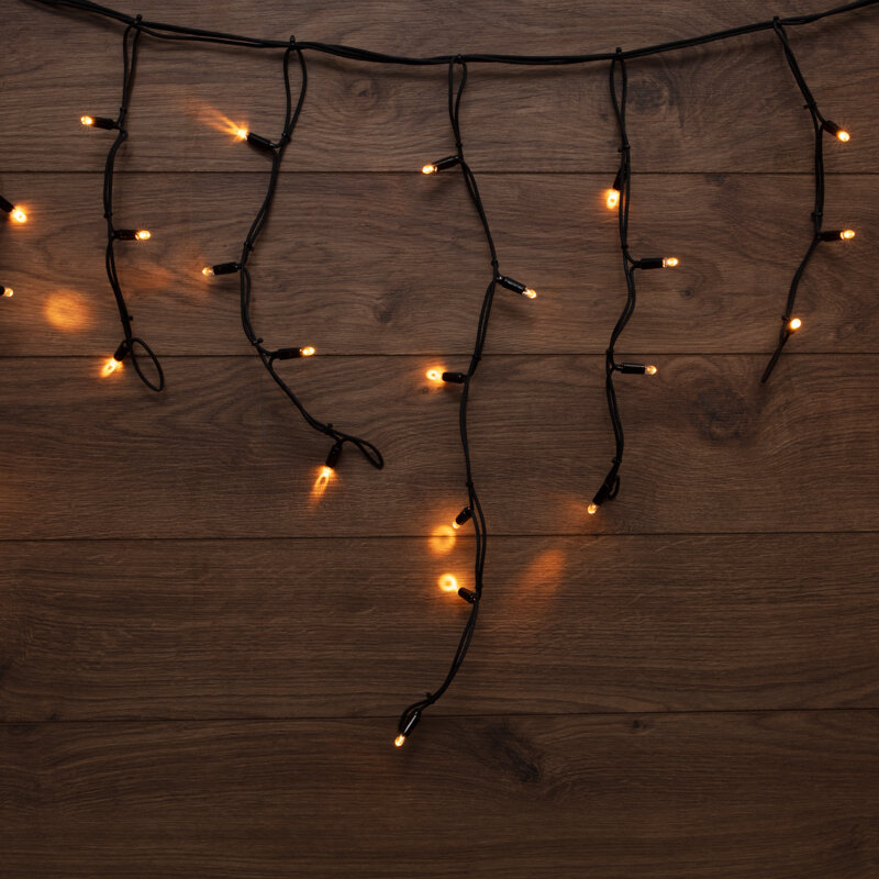 Светодиодная гирлянда "Бахрома" NEON-NIGHT с эффектом мерцания, 5х0.7 м, 152 тепло-белых светодиода, черный каучуковый проводГирлянда "Бахрома" ("Айсикл") представляет собой гибкий горизонтальный шнур-шину, к которому через определенные промежутки крепятся вертикальные нити разной длины со светодиодами. Она имитирует сосульки и может послужить эффектным и оригинальным решением при декорировании карнизов домов, арок, фасадов зданий, витрин магазинов, а также стать элементом декора внутренних интерьеров помещений. Благодаря использованию в гирлянде долговечных светодиодов, ее отличительной особенностью является превосходная яркость и низкое энергопотребление по сравнению с лампами накаливания. При длине 5 метров гибкая направляющая имеет 48 вертикальных нитей от 20 до 70 см. Данная гирлянда имеет теплый белый цвет свечения и предназначена для использования как внутри помещения, так и снаружи. Важной особенностью данного исполнения является каучуковый провод, благодаря которому гирлянду отличает высокая надежность в условиях российского климата, даже в самых холодных регионах страны. Характеристики: размер (ШхВ): 5х0,7 метраэффект мерцания (мерцает каждый 5-й светодиод холодным белым цветом)источник света: 152 долговечных светодиодацвет свечения: тепло-белыйстепень защиты: IP67черный каучуковый проводпитание: 220 В (шнур с дополнительной длиной 1.5 метра)напряжение: 8,7 Втвозможно соединение друг с другом до 50 метров (дополнительное оборудование не требуется)температура эксплуатации: -50. +60 Ссрок службы: 10 летгарантия: 2 года.