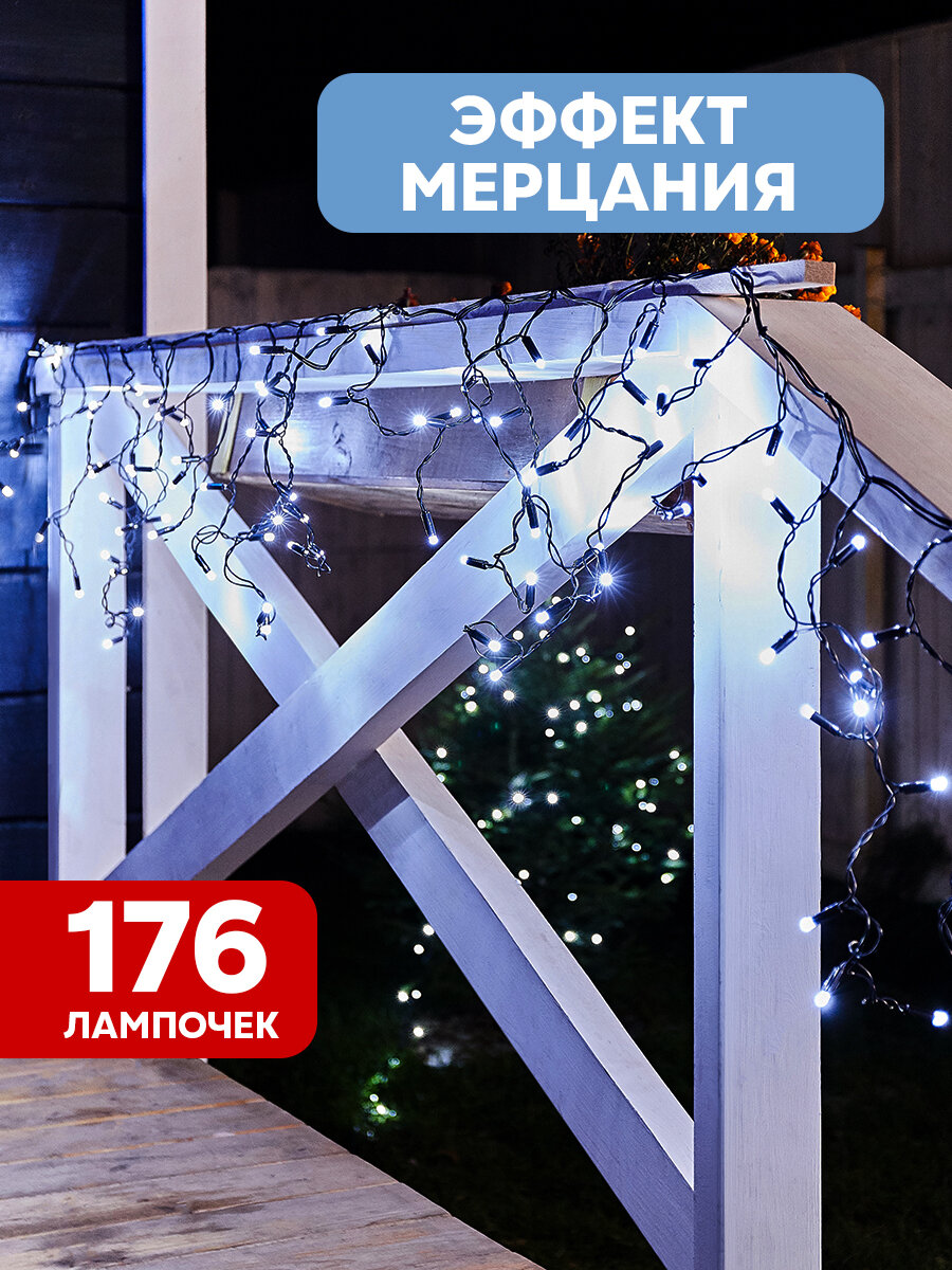 Светодиодная гирлянда "Бахрома" размером 4,8х0,6 м обладает белым свечением и эффектом мерцания (каждый 5-й диод). Изделие станет ярким и оригинальным украшением при декорировании карнизов домов, арок, фасадов зданий, витрин магазинов, а также штор, окон и стен помещения. На гибкий горизонтальный шнур-шину размером 4,8 м в черной оплетке из ПВХ крепятся 48 вертикальных нитей разной длины от 10 до 60 см. Гирлянда оснащена 176 светодиодами, которые не нагреваются, служат дольше классических ламп накаливания и потребляют мало энергии. Высокая степень влагозащиты IP65 предполагает использование светодиодной гирлянды как в доме, так и на улице. Температурный режим эксплуатации изделия: от -25 до +40 градусов Цельсия. Светодиодное изделие мощностью 15 Вт работает от стандартной сети напряжением 220-240 В. Шнур питания имеет длину 1,5 м. Особенностью этого типа гирлянд является то, что их можно соединять между собой до 50 м, создавая масштабные световые композиции. Шнур питания в комплект поставки не входит и приобретается отдельно, рекомендуем артикул MM: 100035378839.