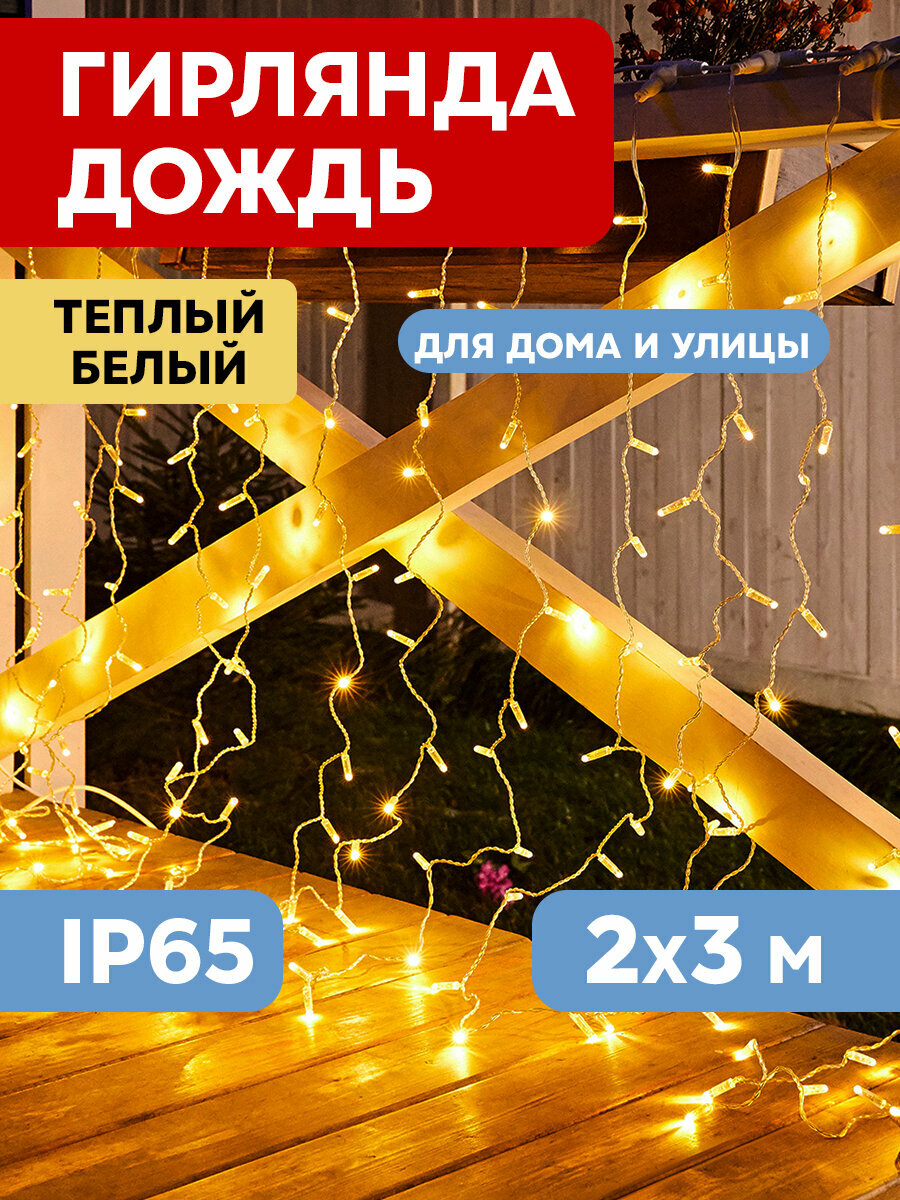 Нужен шнур питания 303-500-1. Гирлянда «Светодиодный Дождь» представляет собой гибкий горизонтальный шнур-шину (2 м), к которому через определенные промежутки крепятся вертикальные нити (16 шт.) со светодиодными лампами, которые отличаются от «Бахромы» тем, что имеют одинаковую, достаточно значительную длину, часто превышающую протяженность шины. На концах каждой шины есть разъем и штепсель, которые предназначены для последовательного соединения нескольких световых дождей в большой занавес ПЛЕЙ-ЛАЙТ. Используя занавес, можно не только создавать красивые световые занавесы или оформлять различные плоскости, например, фасады домов, окна и т. д., но и украшать объемные объекты. Гирлянду, работающую в непрерывном свечении, называют фиксинг, а использующую режим светодинамики – чейзинг. Светодинамические эффекты становятся доступными только при подключении гирлянды к сети через специальный контроллер. Сегодня в гирляндах источником света служат светодиоды, которые пришли на смену применявшимся ранее лампам накаливания. С полупроводниковыми источниками гирлянда стала более надежной, потребляет меньше энергии, обрела более насыщенное сияние. Данная гирлянда имеет теплый белый цвет свечения светодиодов. Ее особенностью является наличие мерцающих светодиодов, которые привлекают внимание и значительно преображают украшенную поверхность.