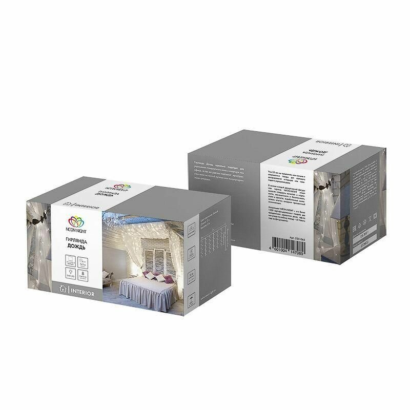 Гирлянда «Дождь» – это настоящий повод для праздника, который можно устроить в любом месте, в любое время, просто включив украшение в розетку. 240 светодиодов искрятся белым ярким светом, озаряя пространство вокруг и дарят веселое настроение всем присутствующим. Гирлянда прекрасно подходит для декора окон в комнатах с высокими потолками. Шнур защищен от повреждений изоляционной оболочкой из прозрачного ПВХ. Гирлянда имеет степень защиты IP20 и предназначена для использования в интерьере и сухих помещениях с умеренной влажностью. Отличительное преимущество интерьерных гирлянд: длина шнура питания 3 метра – этого достаточно, чтобы подключить изделие к розетке в любом удобном месте без использования удлинителей.