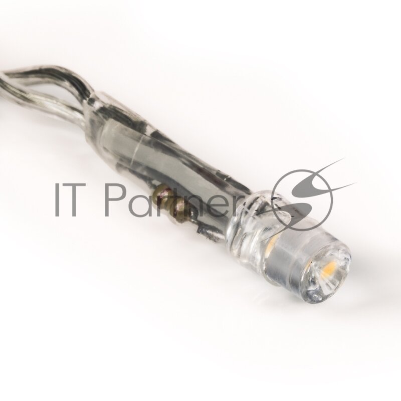 Универсальная светодиодная гирлянда длиной 10 метров состоит из тонкого прозрачного ПВХ-провода с расположенными на нем 100 светодиодами, которые излучают белый свет. Гирлянда с пылевлагозащитой IP20 прекрасно подходит для реализации дизайнерских решений в помещениях с умеренной влажностью. Контроллер с 8 режимами поможет настроить свечение в соответствии с индивидуальными предпочтениями. Гирлянда питается от электросети с напряжением до 230 Вольт.
