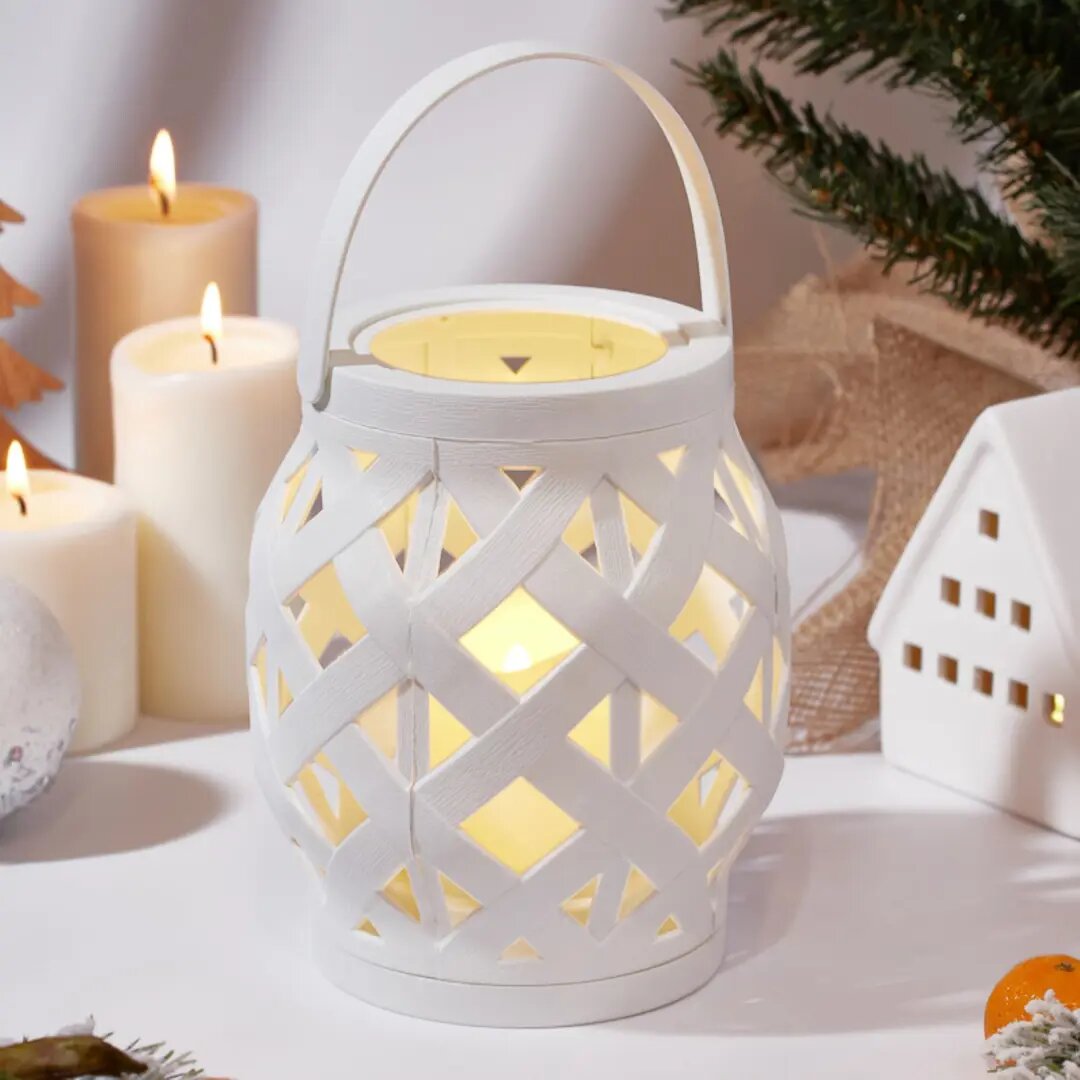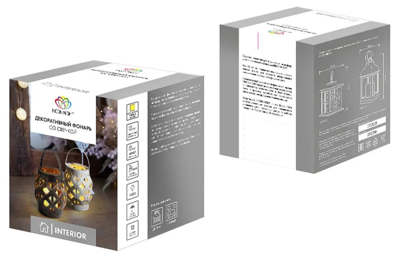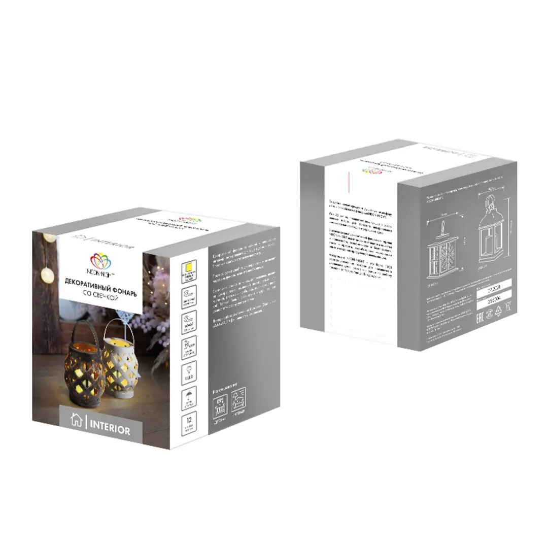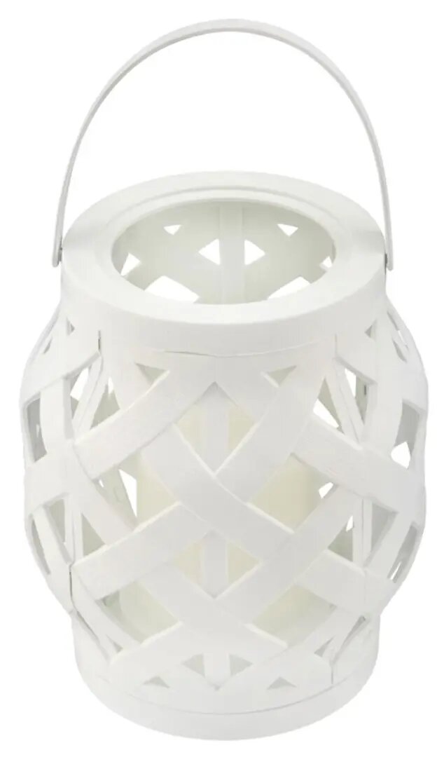 Декоративный фонарь-светильник со свечкой размером 14х14х16,5 см. Плетеный корпус выполнен в лаконичном белом цвете. Стильное интерьерное украшение поможет создать уют и ощущение тепла. Декоративным фонарем можно украсить детскую, гостиную, столовую или фотозону. Пластиковая свечка имитирует восковую и имеет 1 безопасный светодиод, который не нагревается и излучает теплое белое свечение похожее на ровное желтое пламя. Фонарь можно подвесить за ручку. Изделие мощностью 0,1 Вт питается от 3 батареек типа ААА (приобретаются отдельно), имеет невысокую степень влагозащиты IP20 и подразумевает использование в сухих отапливаемых помещениях. На корпусе есть кнопка ON/OFF для включения и выключения подсветки. Благодаря встроенному светодиоду изделие обладает долгим сроком службы, низким энергопотреблением и надежностью. Температурный режим работы светодиодной фигурки: от 0 до +40 градусов Цельсия.