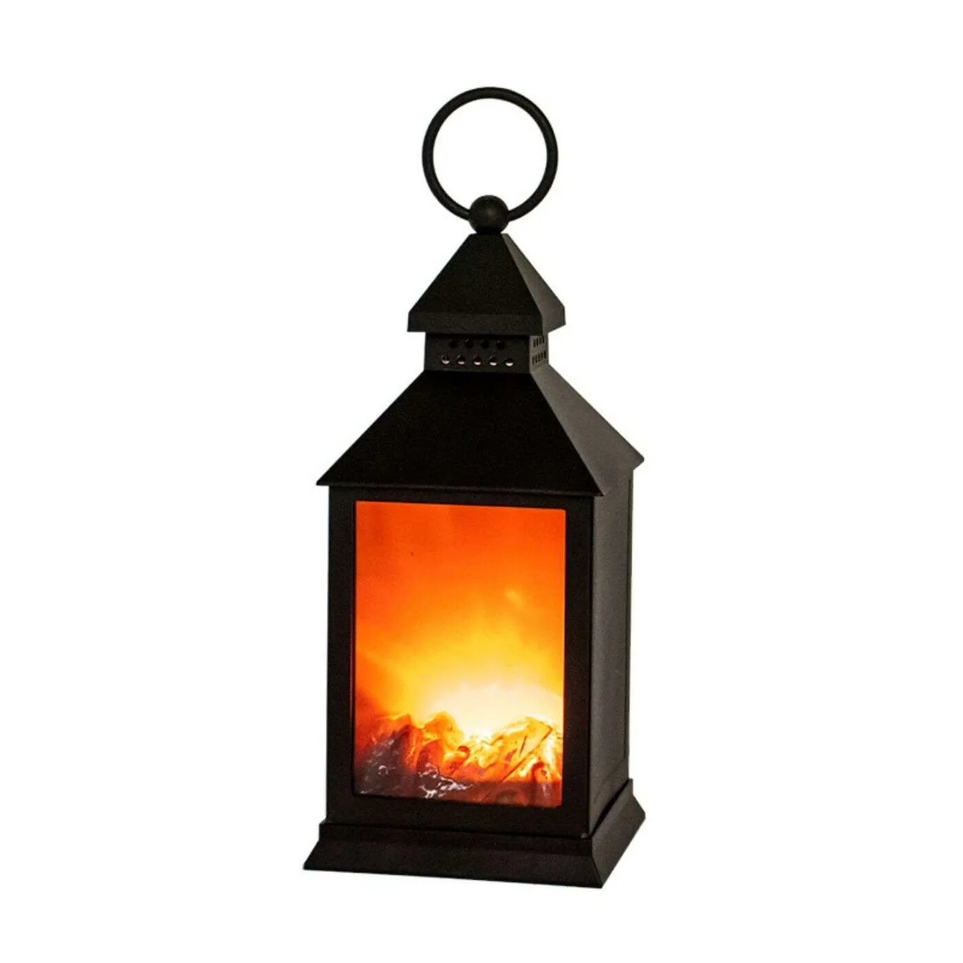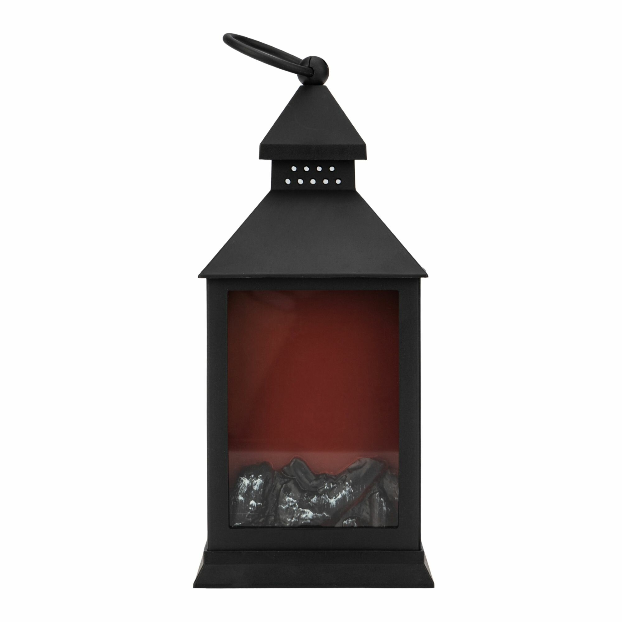 Светодиодный камин-фонарь "Волшебный фонарь" с эффектом живого пламени размером 11х11х24,5 см поможет создать в доме атмосферу уюта и тепла. Главное преимущество декора - безопасность использования: изделие оснащено долговечными светодиодами, которые не нагреваются. Благодаря им декоративный электрокамин не выделяет тепла, дыма, копоти, не искрит и не может повредить окружающие предметы. Изделие эффектно украсит интерьер любой части дома, кафе или ресторана. Небольшие габариты, позволяют легко разместить фонарь на подоконнике, столе, полке или на полу, а также подвесить его за кольцо. 3 светодиода подсвечивают композицию в виде обугленных поленьев, имитируя их горение и тление. Светодиодный декоративный фонарь-ночник питается от 3 батареек типа АА (приобретаются отдельно), что делает его полностью портативным. Степень влагозащиты IP20 подразумевает использование изделия в помещении с умеренной влажностью при температуре от +1 до 35 градусов.