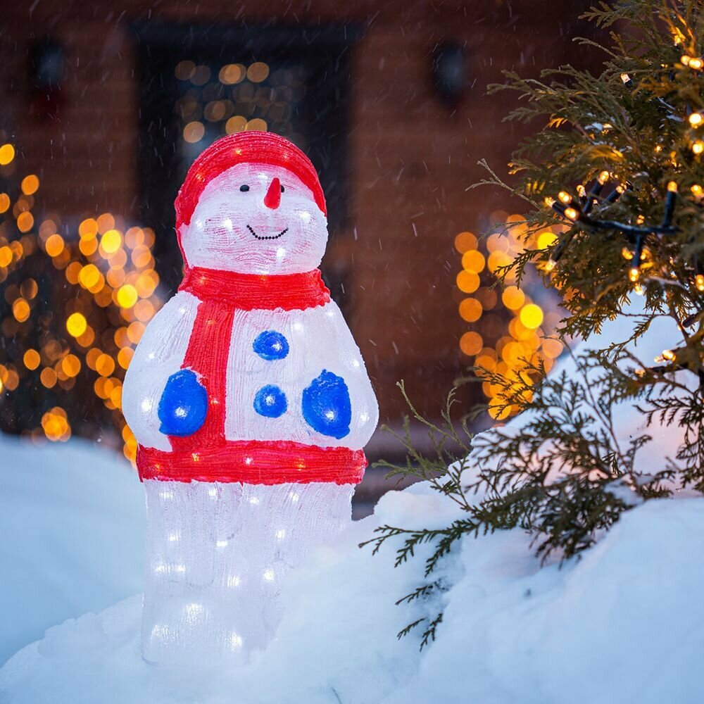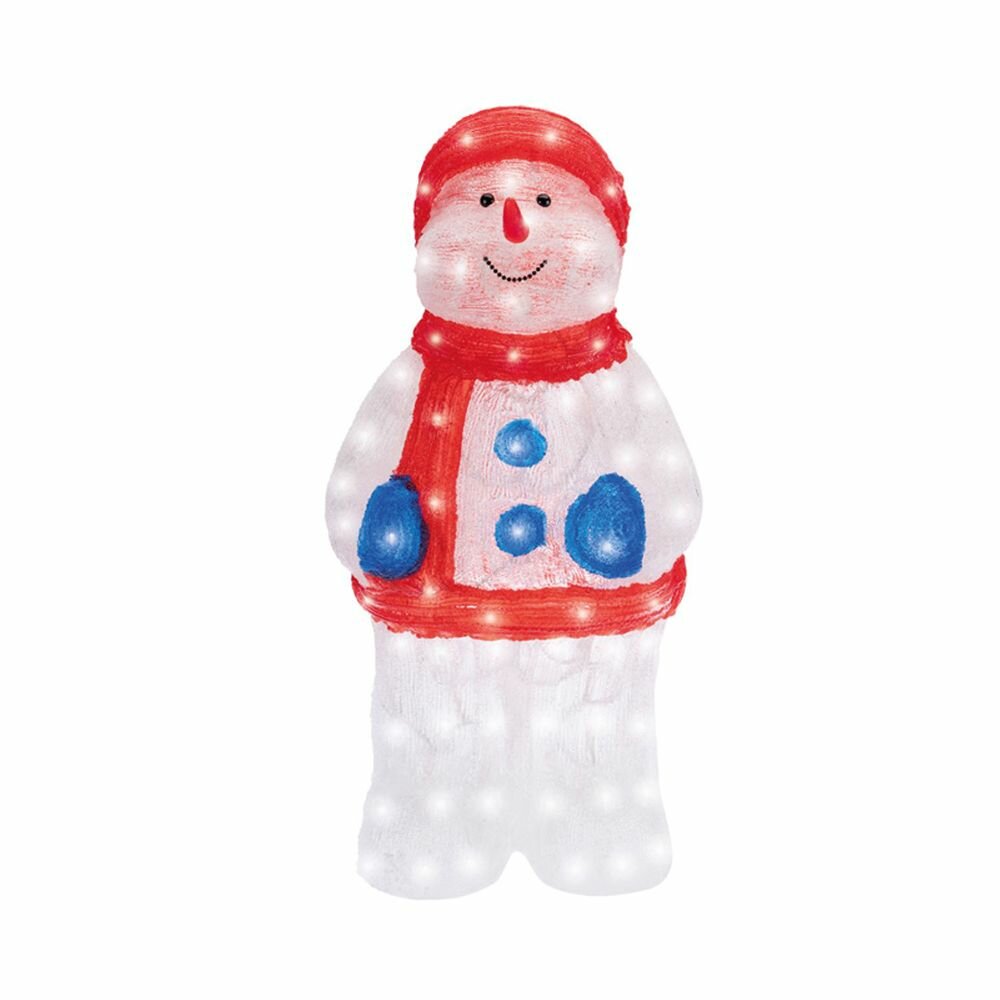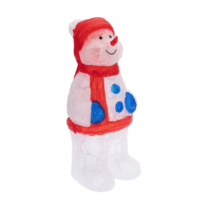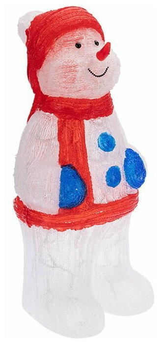 Акриловая светодиодная фигура NEON-NIGHT «Снеговик в синих варежках» высотой 59 см, светящаяся более чем 96 яркими диодами, выполнена по специальной технологии нанесения акрила. Она позволит вам создать ту самую, настоящую новогоднюю атмосферу и принести сотни радостных улыбок. Акриловые фигуры за несколько лет вызвали большой интерес у дизайнеров и частных клиентов. С каждым годом расширяется не только ассортимент акриловых фигур, но и появляются новые технологии нанесения акрила. Эти яркие, светящиеся объемные фигуры, состоящие из металлического каркаса, акрила и светодиодов, применяются для оформления и создания новогодней атмосферы в кафе, ресторанах, торговых центрах, магазинах, на площадях и перед входом, а также просто в частных домах и квартирах. Все фигуры укомплектованы понижающим трансформатором , что обеспечивает безопасность при контактировании, а также имеют степень защиты IP65, что позволяет использовать их как в помещении, так и на улице.