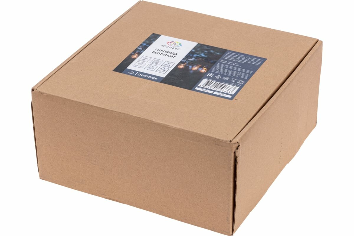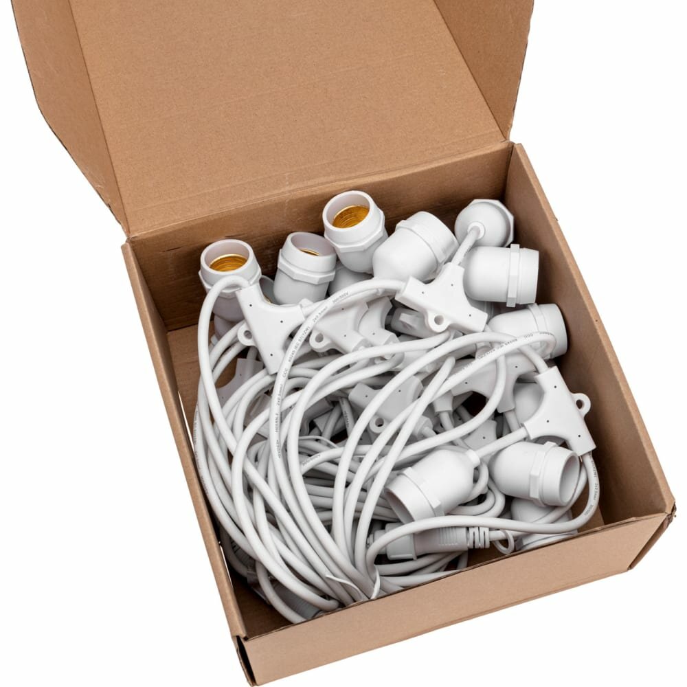 Белт-Лайт – популярная гирлянда для украшения фасадов домов, зданий, создания перетяжек между деревьями, столбами. Также такие гирлянды широко используются для украшения кафе, ресторанов, свадебных площадок и фотозон. 20-метровый шнур оснащен 40 подвесными патронами с цоколем Е27. Патроны располагаются на иллюминационном кабеле с шагом 50 см. Для подключения к сети предусмотрен 3-метровый шнур с евровилкой. Провод находится в надежной изоляции из морозостойкого каучука. Вся конструкция защищена от влаги и пыли по стандарту IP44, поэтому предполагается размещение как дома, так и на улице. Для удобства использования предусмотрена возможность соединения гирлянды до 4-х комплектов. Гирлянда длиной 20 метров станет прекрасным украшением интерьера или экстерьера.