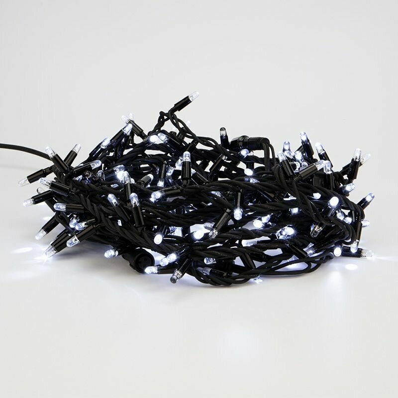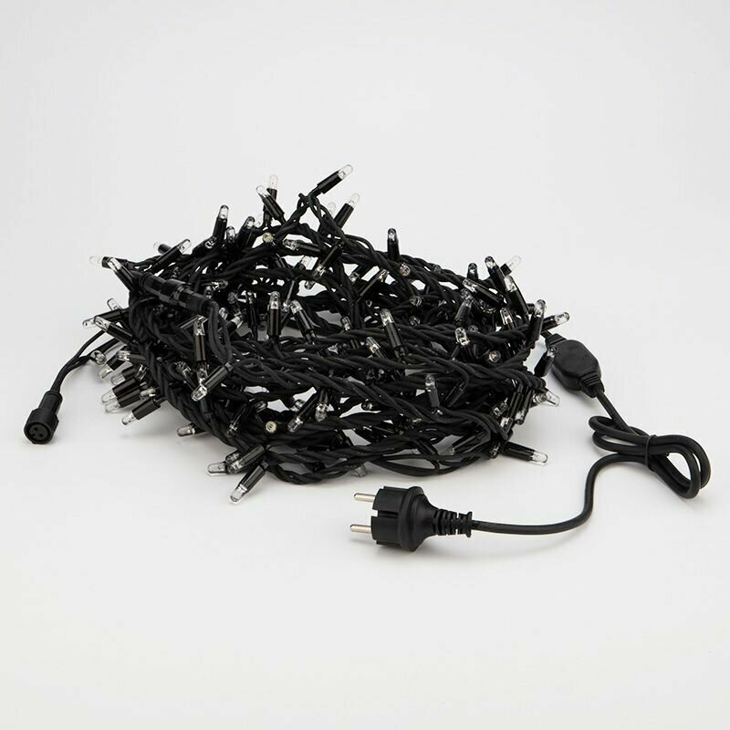 Гирлянда «Кластер» с большим количеством ламп позволит выигрышно декорировать светом натуральные и искусственные ели, хвойные гирлянды и композиции, а также подойдет для оформления интерьера дома, рабочего места, витрины магазина. Гирлянда прекрасно подходит для использования как внутри помещения, так и снаружи, благодаря высокой степени пылевлагозащищенности. Объемная светящаяся гирлянда представляет собой скопление сверкающих огоньков вокруг оси – провода.Данная гирлянда имеет длину 10 м, на которой равномерно расположено 200 диодов белого цвета свечения.