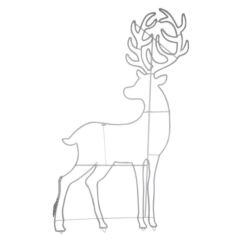 Фигура " Сказочный олень" Neon-Night преображает пространство, дарит незабываемые эмоции детям и взрослым. Популярна при оформлении парков, входных групп торговых центров, ресторанов, фасадов зданий. Представляет собой металлический каркас, декорированный гибким неоном. Встроенные светодиоды (2400 LED) - самые экологически чистые источники света; не нагреваются даже при длительной работе и позволяют экономить электроэнергию. Высококачественные материалы гарантируют длительный срок эксплуатации изделия: фигура устойчива к воздействию осадков и солнечного света. С помощью специальной подставки Вы сможете установить фигуру в вертикальном положении (без крепления к стене). В комплекте поставляется трансформатор, который понижает напряжение и обеспечивает безопасность пользования. Степень защиты IP 65; температурный режим от -40 до +50; мощность: 140 Вт. Питание осуществляется от сети 220 В (длина прозрачного ПВХ шнура - 1.5 м). Яркое свечение фигуры гарантирует праздничное настроение и атмосферу волшебства!