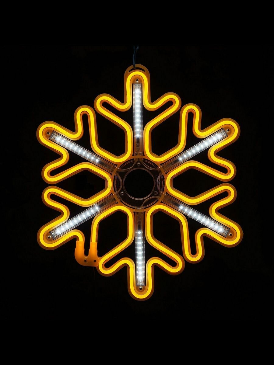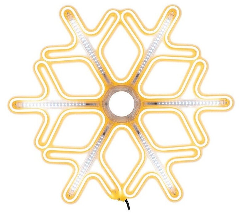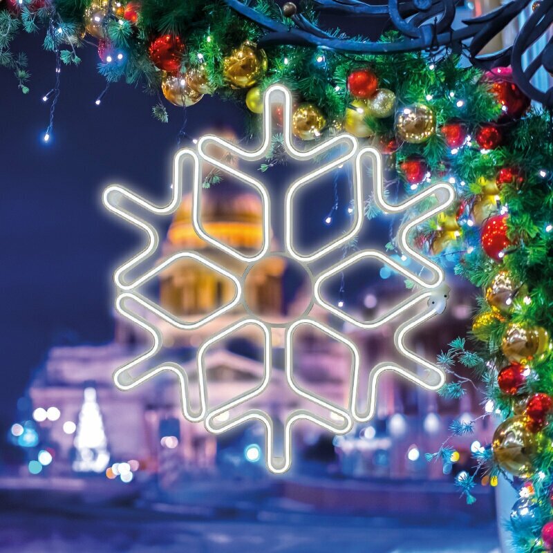 Фигура " Снежинка" Neon-Night преображает пространство, дарит незабываемые эмоции детям и взрослым. Изделие используется для оформления жилых и офисных помещений, фасадов зданий. Популярна при украшении парков, входных групп торговых центров, ресторанов. Представляет собой металлический каркас, декорированный гибким неоном. Встроенный светодиоды (720 LED) - самые экологически чистые источники света; не нагреваются даже при длительной работе и позволяют экономить электроэнергию. Монтаж не требует подготовки: фигура с легкостью крепится в необходимом Вам месте с помощью специального " ушка" на каркасе. В комплекте поставляется трансформатор, который понижает напряжение и обеспечивает безопасность пользования. Степень защиты IP 65; температурный режим от -40 до +50; мощность: 42 Вт. Питание осуществляется от сети 220 В (длина прозрачного ПВХ шнура - 1.5 м). Диаметр снежинки: 60 см. Яркое мерцание фигуры гарантирует праздничное настроение и атмосферу волшебства!
