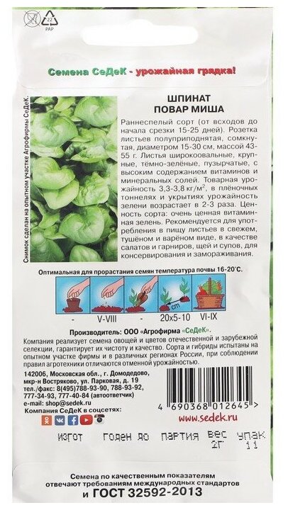 Сервис сравнения цен СкидкаГИД предлагает сравнить цены на товар «Шпинат Повар Миша СеДек»
