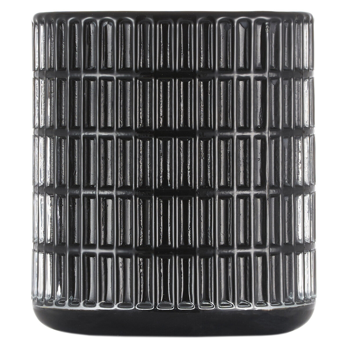 Свеча оформлена в декоративном стеклянном стакане-подсвечнике с рифленой поверхностью черного цвета. Глядя на горящую свечу в таком подсвечнике, создается эффект сверкающего драгоценного камня.