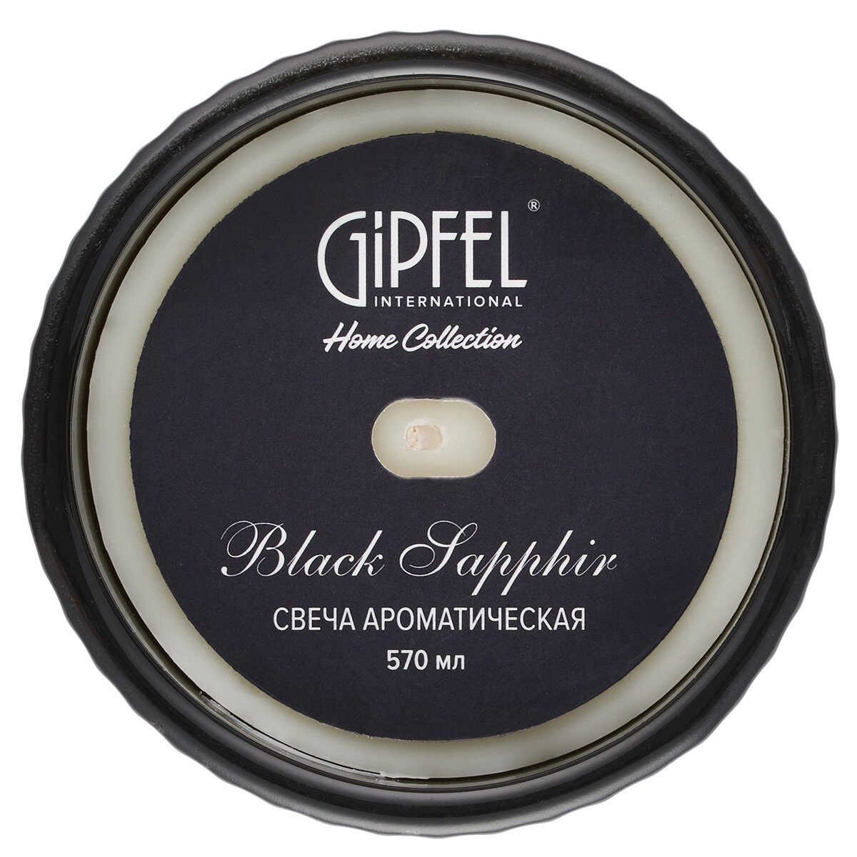 Ароматическая свеча Gipfel Black sapphire 42913, объемом 570 мл. Изготовлена из парафина, воска и парфюмерной композиции. Состав безопасен для здоровья, не содержит свинец.