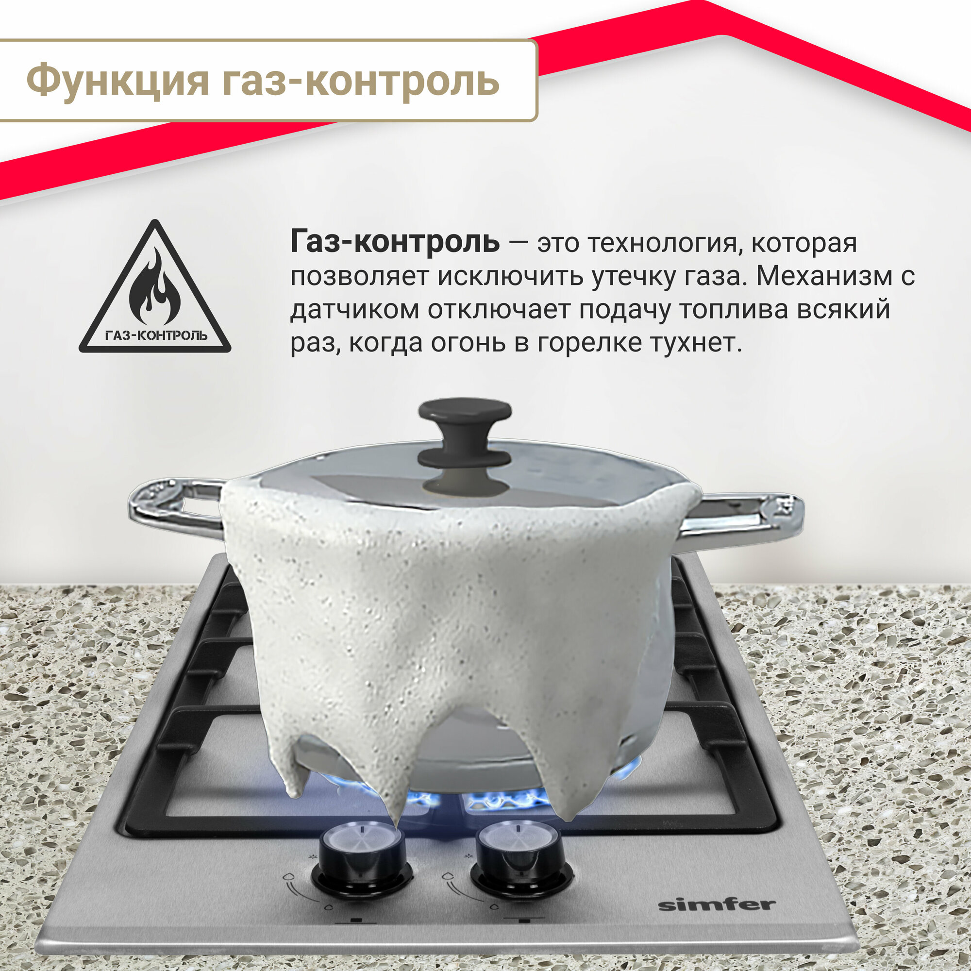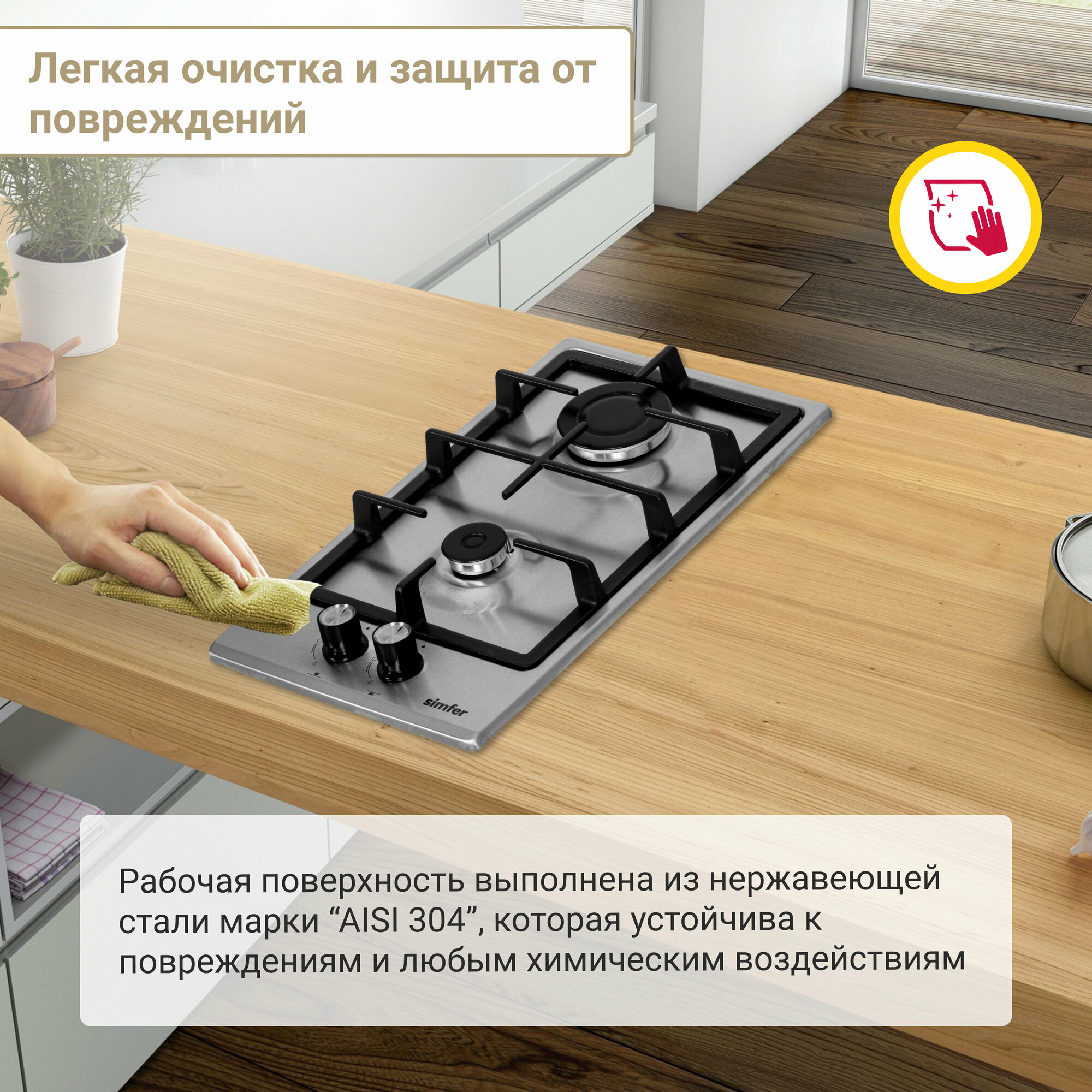Газовая варочная панель Simfer H30V20M570 (с газ-контролем чугунные решетки автоподжиг серебристая)