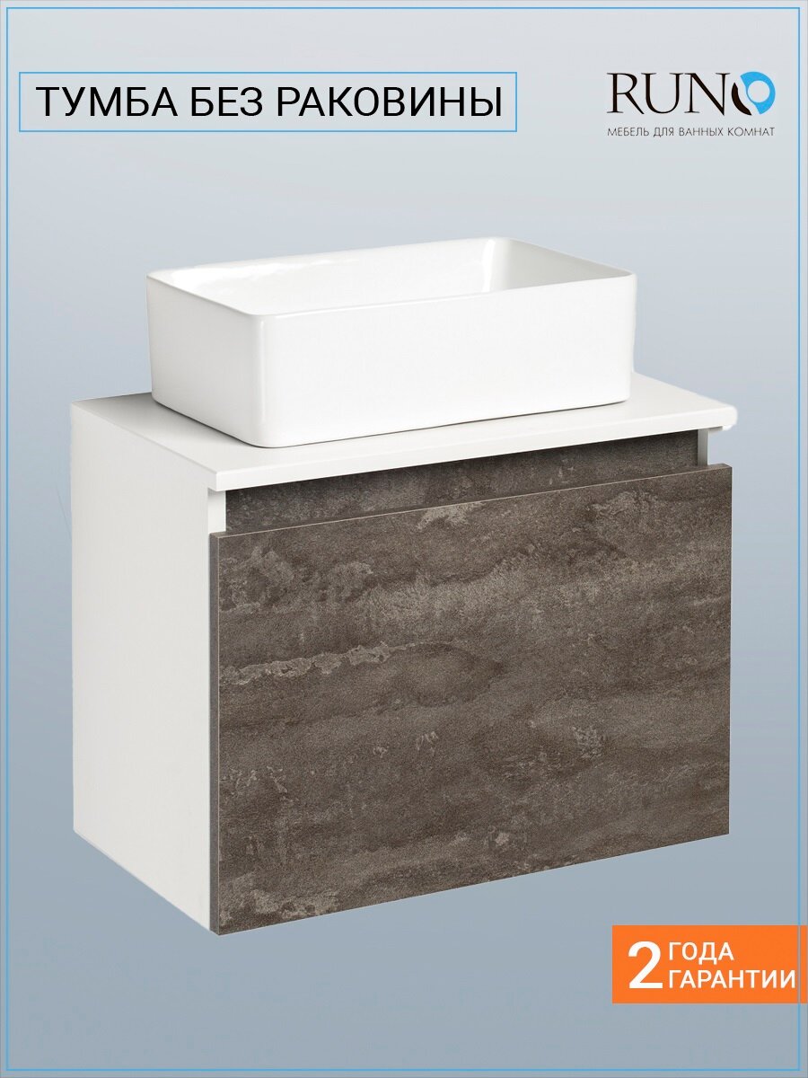 Тумба с раковиной Runo Бари 50 см подвесная, белая, железный камень