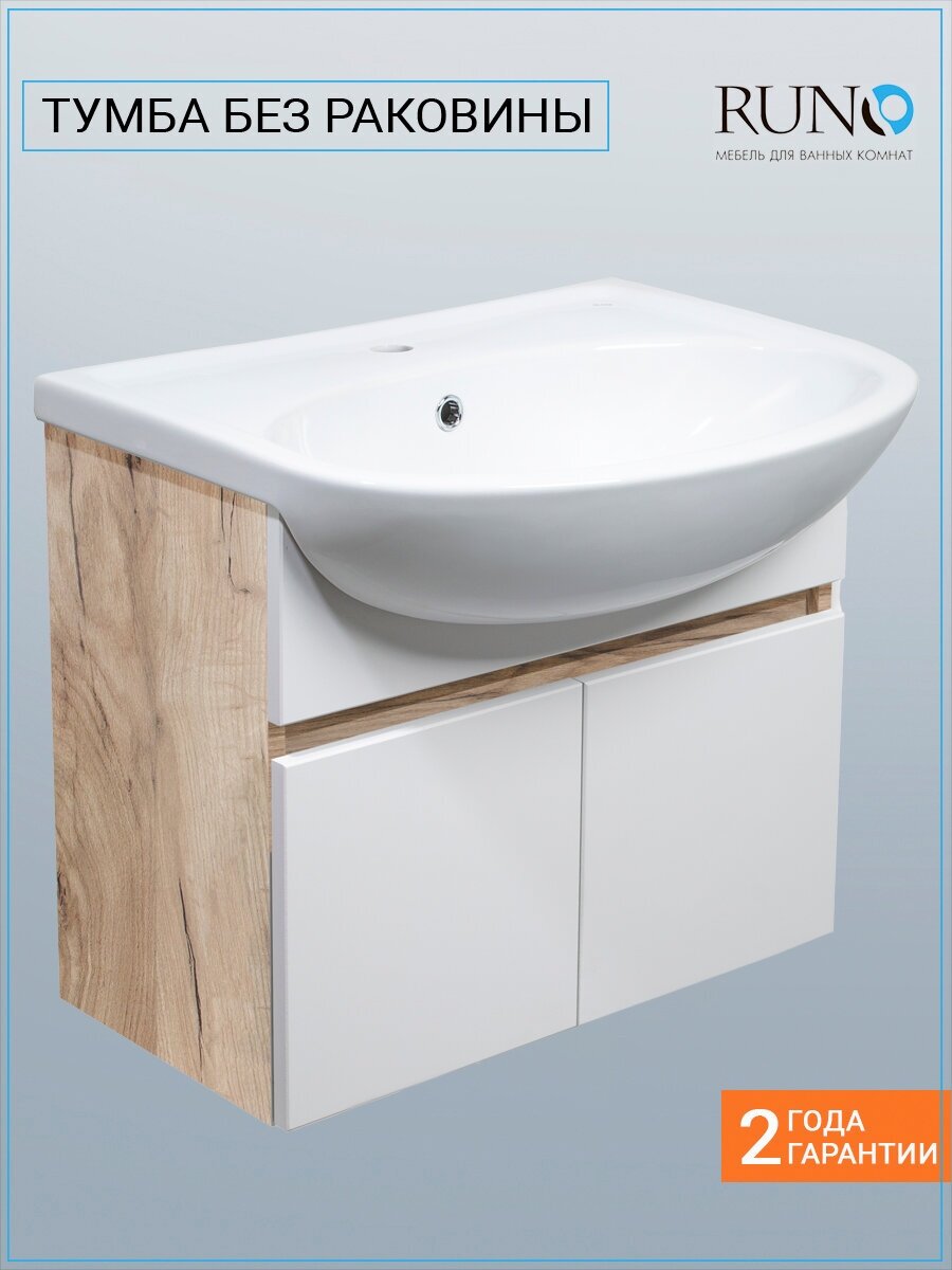 Сервис сравнения цен СкидкаГИД предлагает сравнить цены на товар «Тумба с раковиной Runo Лада 51 см подвесная, белая, крафт дуб»