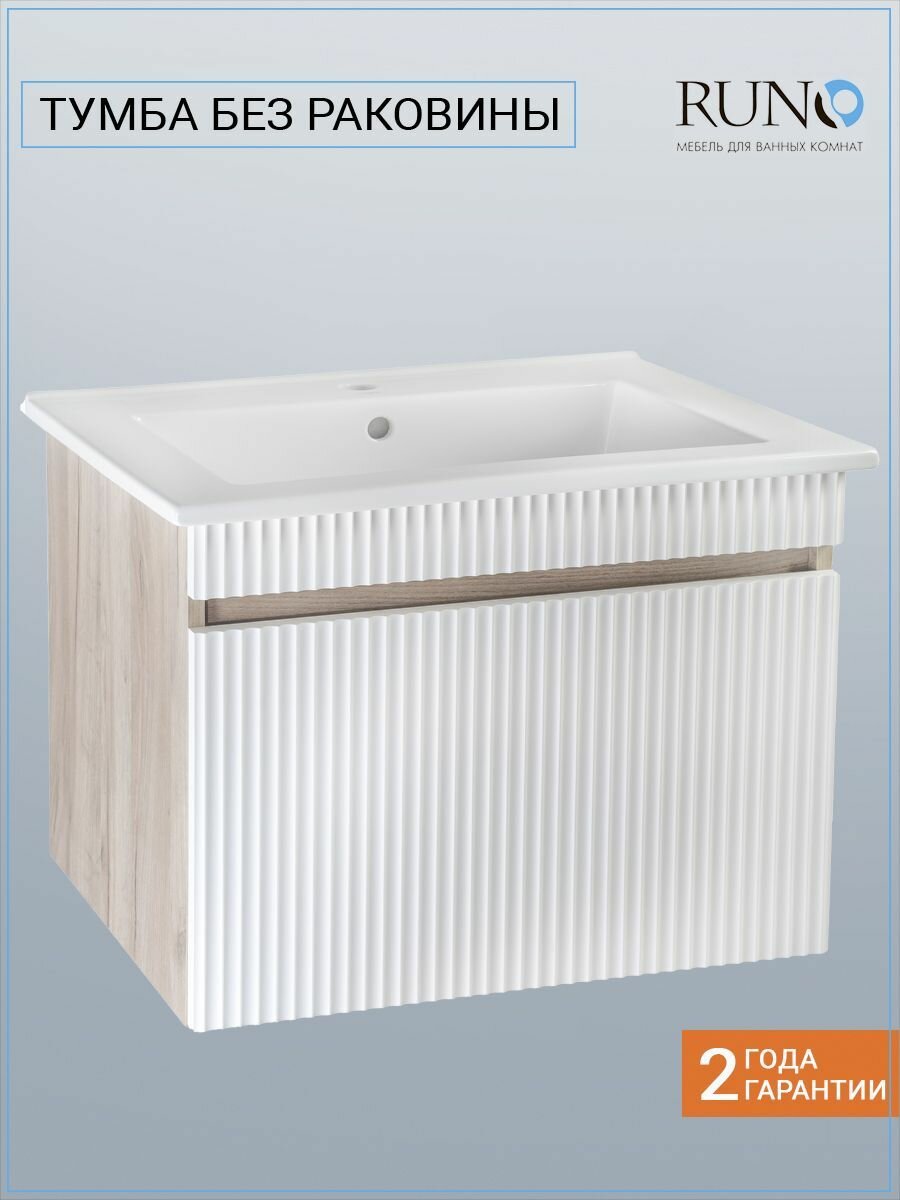 Тумба под раковину в ванную RUNO МОДЕНА (подвесная) – это изысканность и утончённая роскошь в интерьере. Волнистые рифленые фасады визуально «оживляют» и «приводят в движение» всю обстановку комнаты, сохраняя при этом умиротворение и покой, превосходно сочетаются с древесной фактурой и текстурой необработанного натурального камня корпуса. Корпус в двух цветах: текстура светлого дерева или необработанного натурального камня. Цвет фасада классический – белый глянец, идеально впишутся в любой интерьер ванной комнаты. Тумба для ванной оснащена выдвижным ящиком на шариковых направляющих, к тумбе для ванной подходит накладная керамическая раковина «Оскар» (770х470 мм). Раковина глубиной 19 см. Мебель для ванной RUNO - красота и практичность в мелочах, тумба под раковину для ванной комнаты Модена – лучший выбор для Вашей ванной комнаты! Цвет товара на мониторе может отличаться от реальных цветов, это зависит от настроек цветового профиля и разрешения Вашего монитора или мобильного устройства.