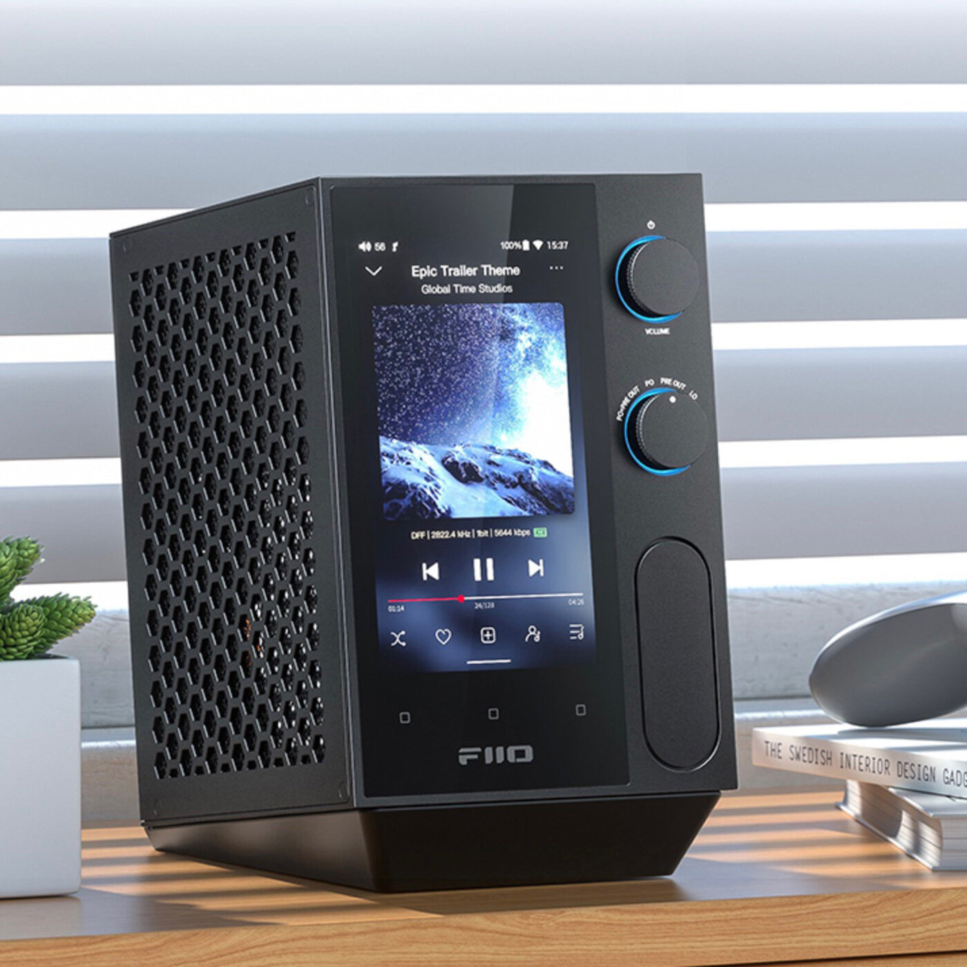 Настольный Hi-Fi-плеер FiiO R7 представляет собой многофункциональное устройство, способное стать универсальным источником сигнала в современной аудиосистеме. Аппарат выполнен в небольшом, привлекательном внешне корпусе из металла и рассчитан на вертикальное размещение, благодаря чему займет минимум места на стойке или столе. На фронтальной панели FiiO R7 смонтирован 4,97-дюймовый дисплей с «портретным» выводом изображения, который очень удобен в использовании. Для управления устройством можно использовать пульт ДУ или фирменное приложение.