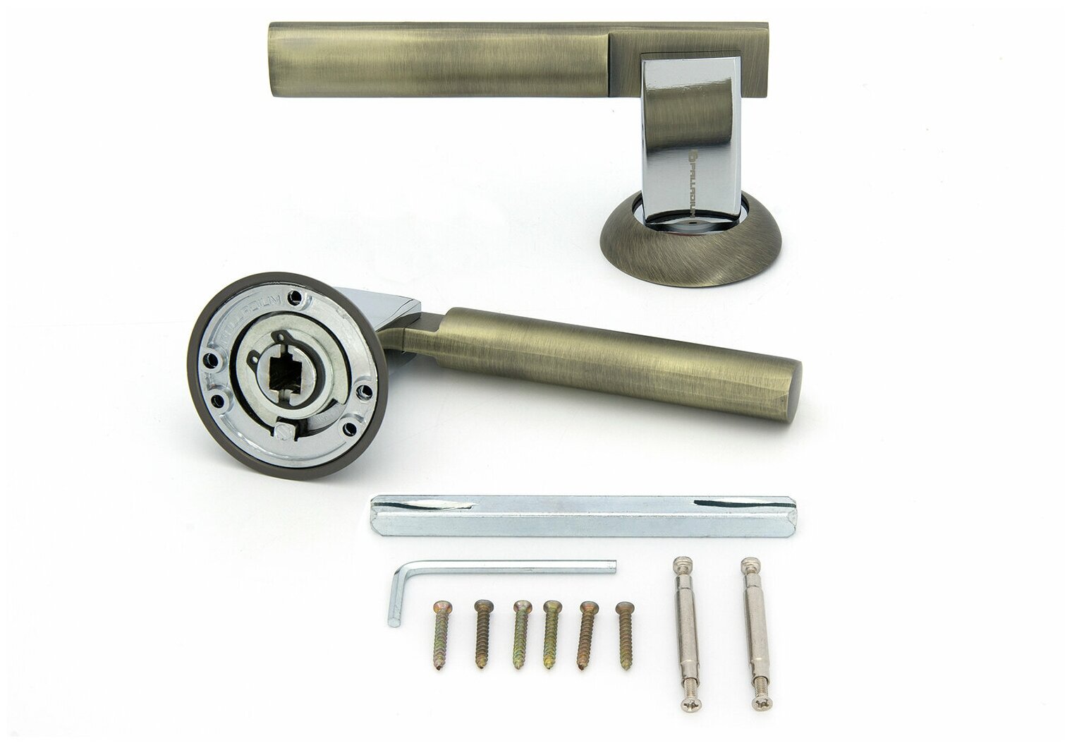 Palladium A Rio – дверная ручка в авангардно-индустриальном стиле. Сочетается с любыми входными и межкомнатными дверьми, кроме строгой классики. Особенно удачно смотрится на царговых деревянных и панельных стальных полотнах. Классическая круглая розетка. Покрытие: шестислойная гальваника. Завершающий слой – двойной лаковый. Стойкость к коррозии: 96 ч в тесте с соляным туманом. Оптимальная (137 мм) длина, мягкий ход пружины. Отсутствие режущих краев (все грани скруглены). Ресурс механизма: не менее 100 000 срабатываний. В комплекте: ручки для дверей (2 шт.), квадрат 8x8 мм, шестигранник, шурупы (6 шт.), стяжные винты (2 шт.). Материал: алюминий Цвет: COFFEE/хром Упаковка: коробка