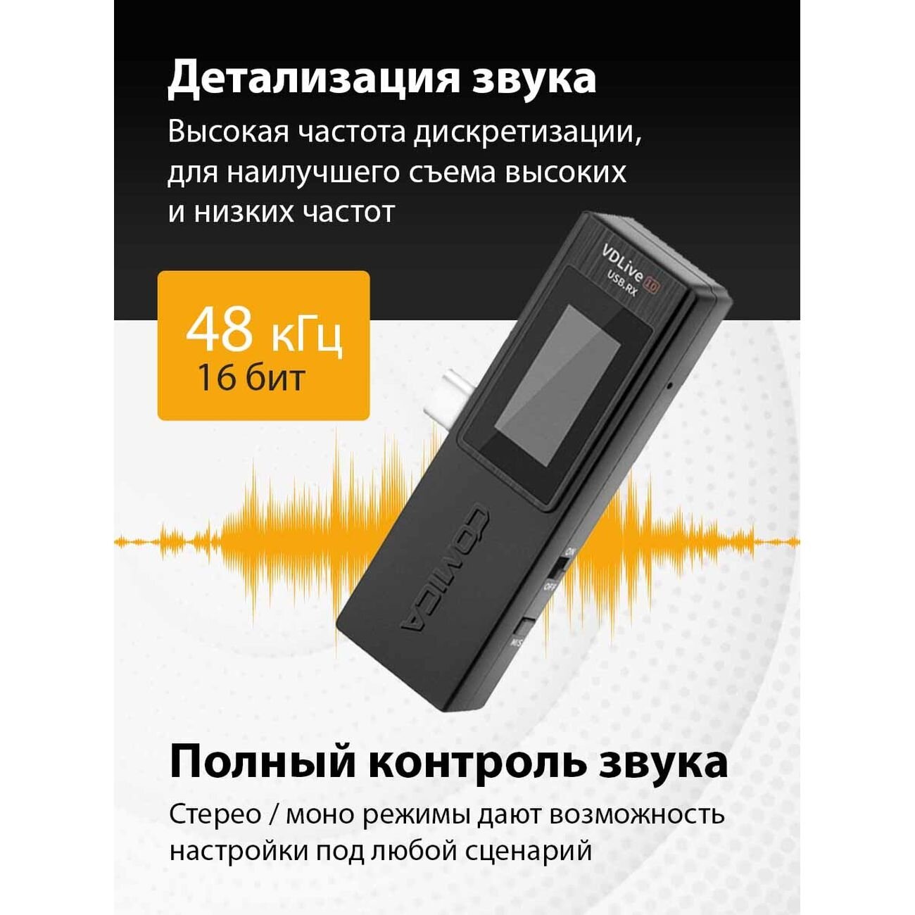 Comica VDLive10 представляет собой двухканальные беспроводные микрофоны 2.4 ГГц, которые работают со стереорежимами и переключаемой симплексной/дуплексной передачей сигнала.