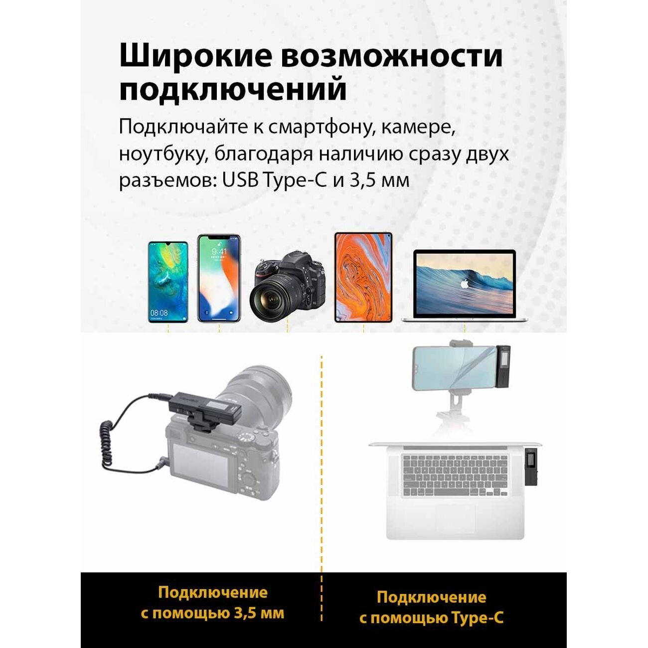 | Подключение к устройству | 3.5mm Mini-Jack,USB Type-C |