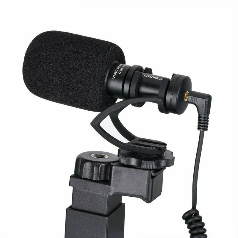 Микрофон-пушка Comica с кардиоидной (узкой) диаграммой направленности для смартфона. В комплекте поставляется специальная ручка-держатель для смартфона, антивибрационный подвес для микрофона и поролоновая/меховая ветрозащиты. Держатель позволяет устанавливать смартфоны различных марок и моделей, максимальная ширина 95 мм. Держатель имеет отверстия 1/4", а также крепление типа "горячий башмак". Характеристики: Принцип работы: электронный конденсатор Направленность: кардиоида Максимальный SPL: 100 дБ Частотный диапазон: 80 Гц ~ 16000 Гц Динамический диапазон: 100 дБ Чувствительность:-34±3db Сигнал/шум: ≥58 Вес: 34.2 г Размер: 21 мм * 85 мм Поставляется в сумке на молнии.