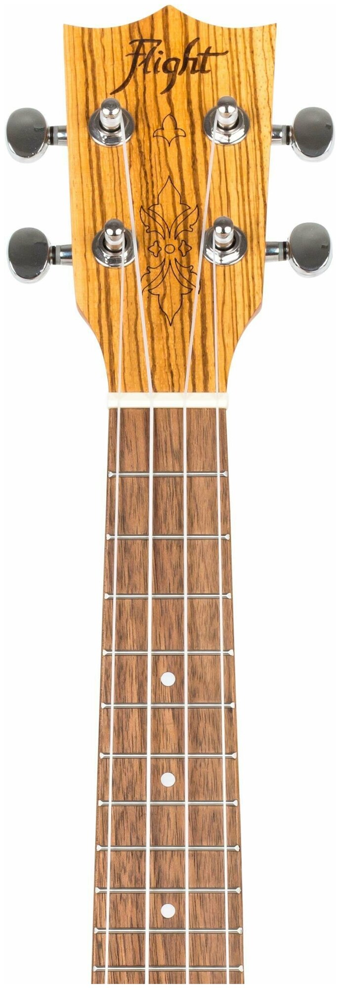 Название древесины “зебрано” недаром кажется забавной смесью слов “зебра” и “сопрано”: изделия из зебрано выглядят так же интересно и неожиданно, как и обитательница саванны - зебра. Укулеле сопрано Flight DUS 322 ZEB - полосатая, как зебра, необычная и красочная, создана, чтобы удивлять внешним видом, - но это только вершина айсберга.