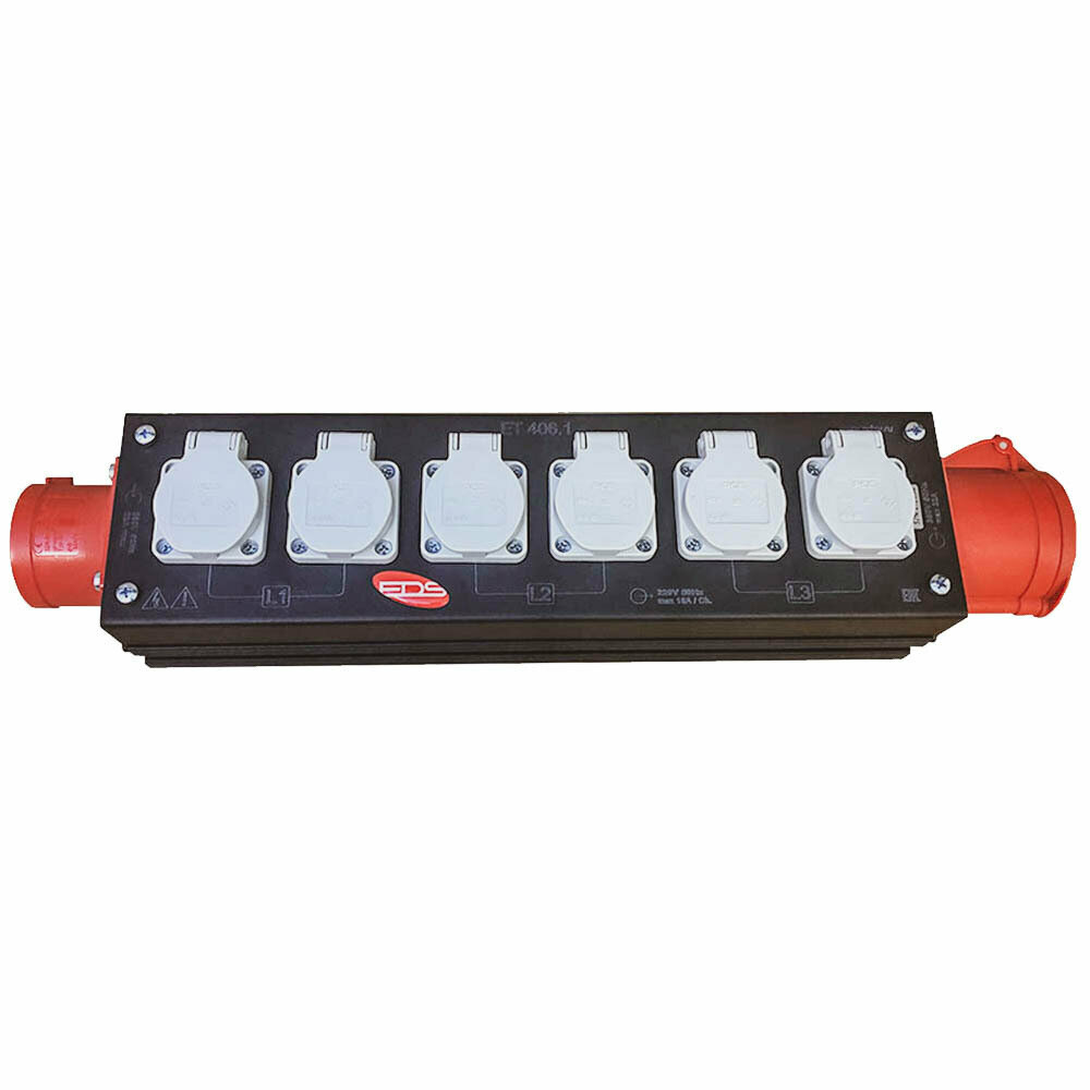Дистрибьютор питания для подключения звукового и светотехнического оборудования внутри помещений.Осуществляет коммутацию от входного разъема PCE CEE32A 5-pol. IP44 до встраиваемых розеток PCE Schuko 16A по две на каждую фазу, а также сквозную коммутацию до выходной розетки PCE CEE32A 5-pol. IP44.Продольные пазы для крепления с помощью струбцины.Резиновые ножки для установки устройства на пол.Надежная конструкция из алюминиевого профиля и 1,5мм стали.Черное порошковое покрытие.Количество каналов (2 розетки PCE Schuko 16A на фазу): 6.Ввод через разъем PCE СEE32А 5-pol. IP44: 32А 380В.Выход через розетку PCE CEE32A 5-po. IP44l: 32А 380В.Параметры канала: 16А 220В.Габариты: 400х110х98мм.Вес: 2,8кг.