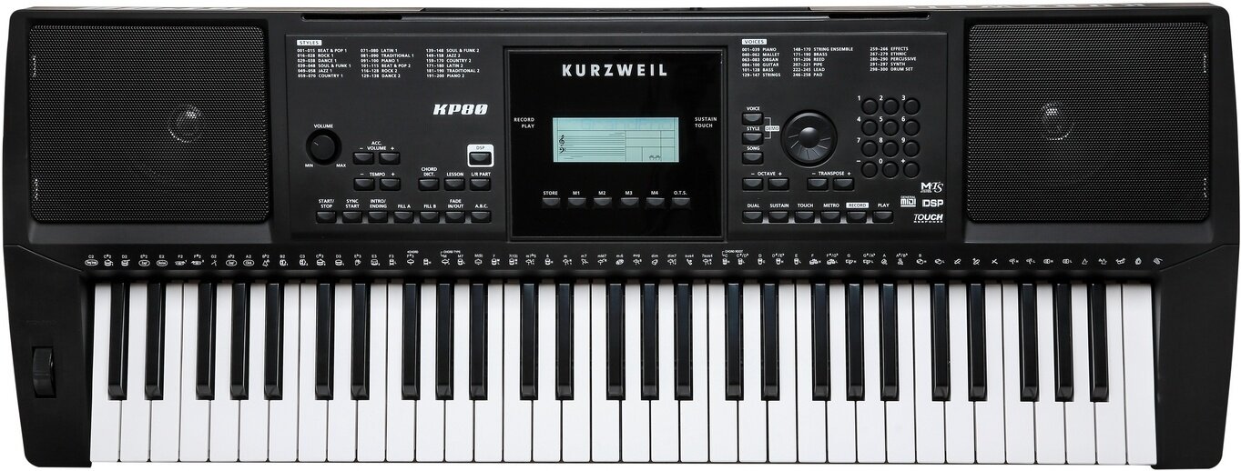 Kurzweil KP80 имеет 200 стилей автоаккомпанемента, включая встроенные интерактивные паттерны в различных музыкальных жанрах. Это позволяет вам иметь всегда под рукой целую группу аккомпанемента. Вы также можете использовать функцию записи композиций для записи своих собственной игры на синтезаторе.