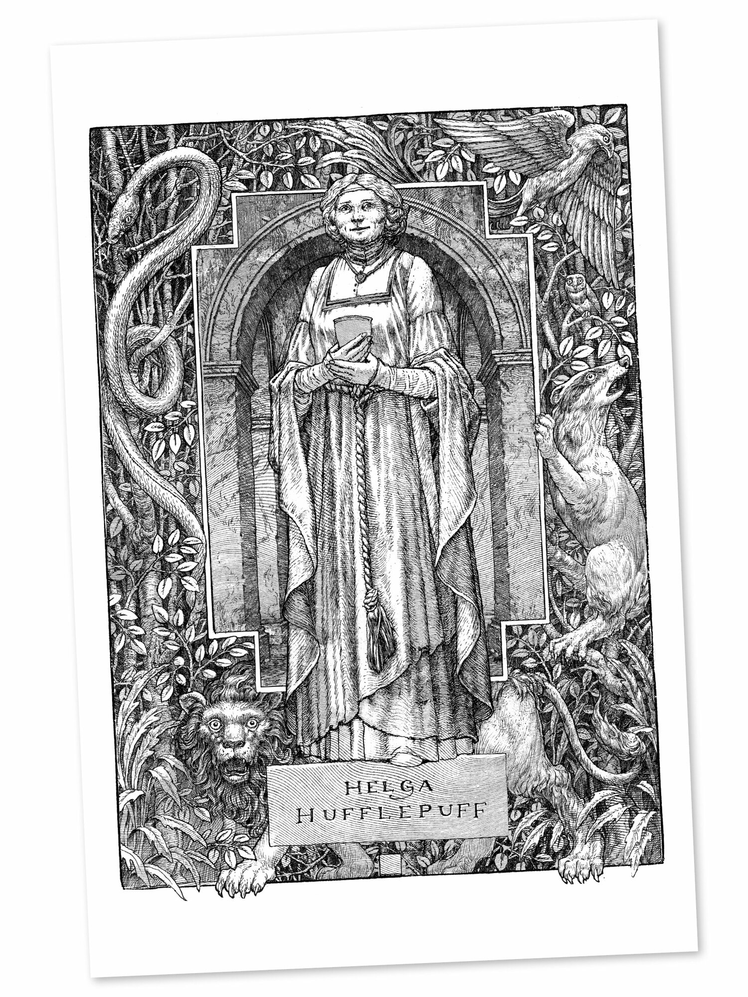 Home to those famed for their loyalty, Hufflepuff house has produced some of the most famous witches and wizards in history, including Hogwarts alumni Cedric Diggory and Auror Nymphadora Tonks. The seven lovingly designed covers are individually decorated with enchanting details that capture favourite house themes from each novel. Charming vignettes of the Hufflepuff badger in a series of playful poses across the seven book spines complete the decoration scheme. An exclusive artwork print depicting house founder Helga Hufflepuff holding the cup of Hufflepuff makes for a highly collectable keepsake.