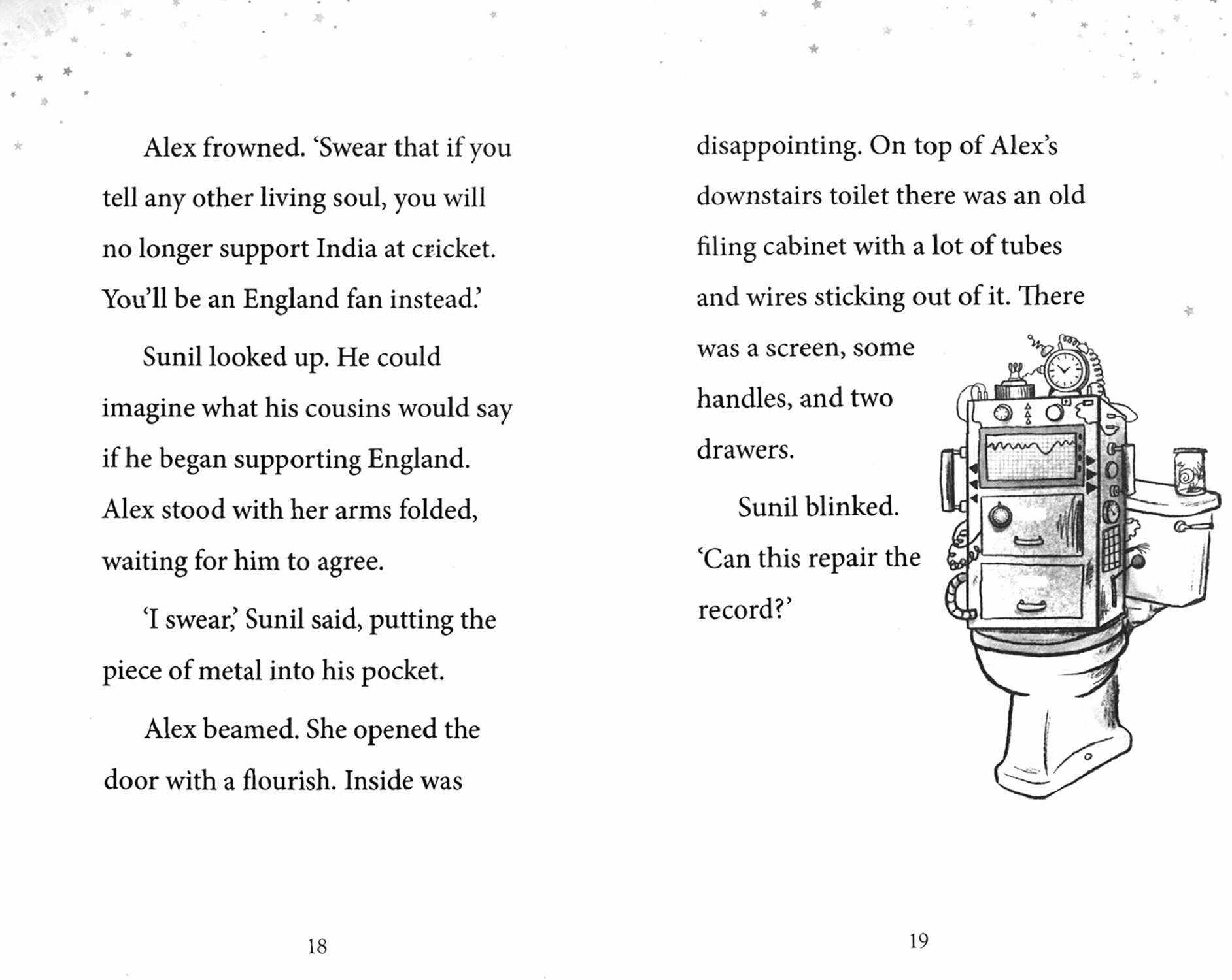 Sunil is bored. Very bored. Whilst home alone, he accidentally breaks his grandfather's most prized possession and must scramble for a way to fix it. Alex, his eccentric next-door neighbour, has an unusual solution to his problem – a time machine! Soon, Sunil is visiting the freezing, icy depths of Antarctica as a stowaway on a stranded ship and the heart of London to meet famous astronauts – all while trying to stay away from a mysterious man with a particularly suspicious pet kiwi…