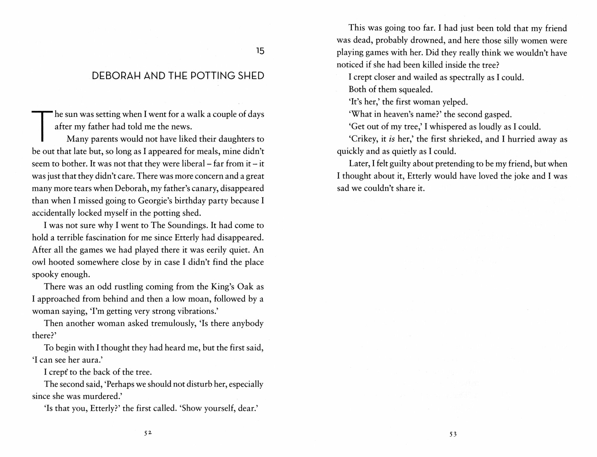 July, 1914: Sixteen-year-old Etterly, running from something, hides inside the trunk of a tree and disappears. The police search but find no trace. Her family and friends wrack their brains, but come up with nothing. And so slowly life returns to normal. The hole in the tree is boarded up and the town of Sackwater moves on.
