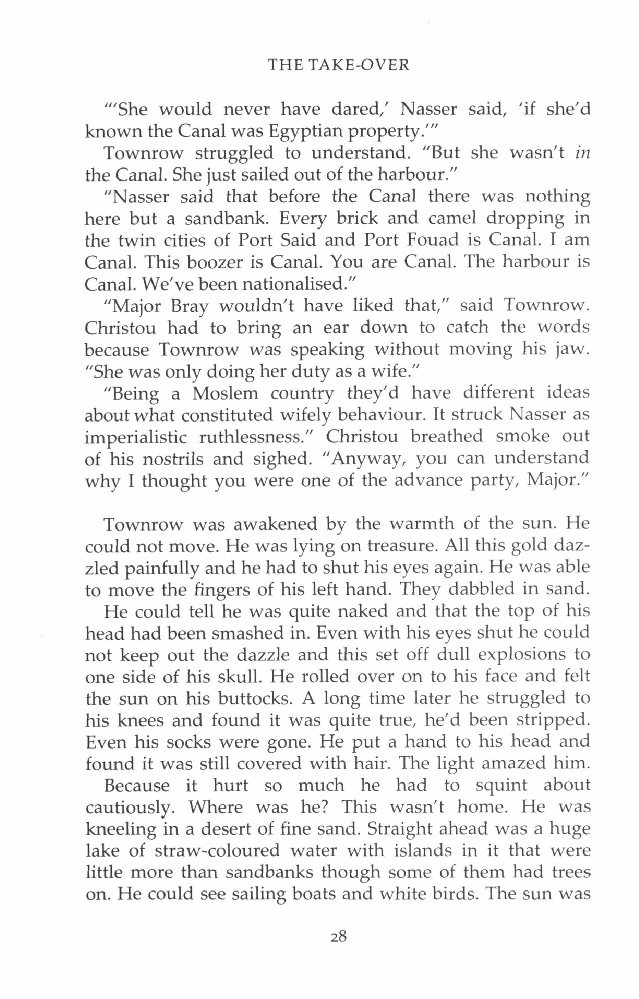 It is 1956 and Townrow is in Port Said – of these two facts he’s reasonably certain. He has been summoned by the widow of his deceased friend, Elie Khoury. She is convinced that Elie was murdered, but nobody seems to agree with her. What about Leah Strauss, the mistress? And the invading British paratroops? Only an Englishman, surely, would take for granted that the British have behaved themselves. In this disorientating world Townrow must assess the rules by which he has been living his life – to wonder whether he, too, may have something to answer for . . .