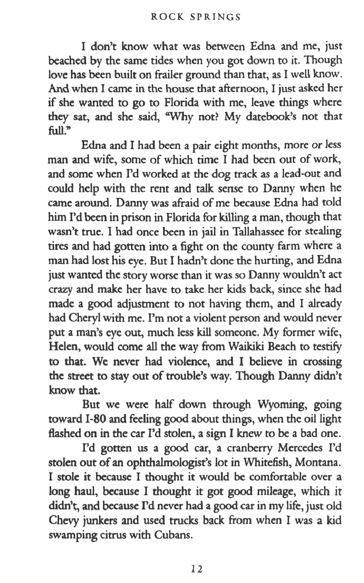 In these ten stories, Ford mines literary gold from the wind-scrubbed landscape of the American West - and from the guarded hopes and gnawing loneliness of the people who live there. A refugee from justice driving across Wyoming with his daughter; an unhappy girlfriend and a stolen Mercedes; a boy watching his family dissolve in a night of tragicomic violence; two men and a woman swapping hard-luck stories in a frontier bar as they try to sweeten their luck. Rock Springs is a masterpiece of taut narration, cleanly chiselled prose, and empathy so generous that it feels like a kind of grace.