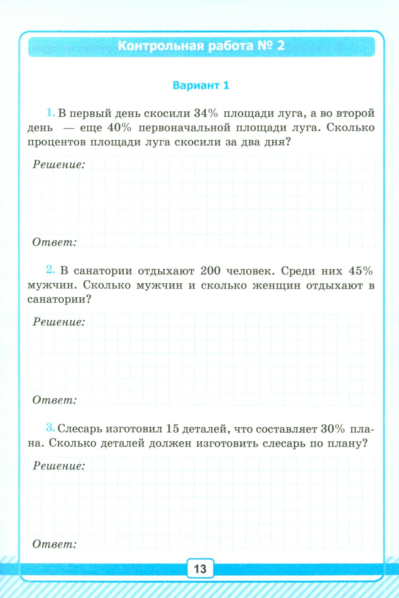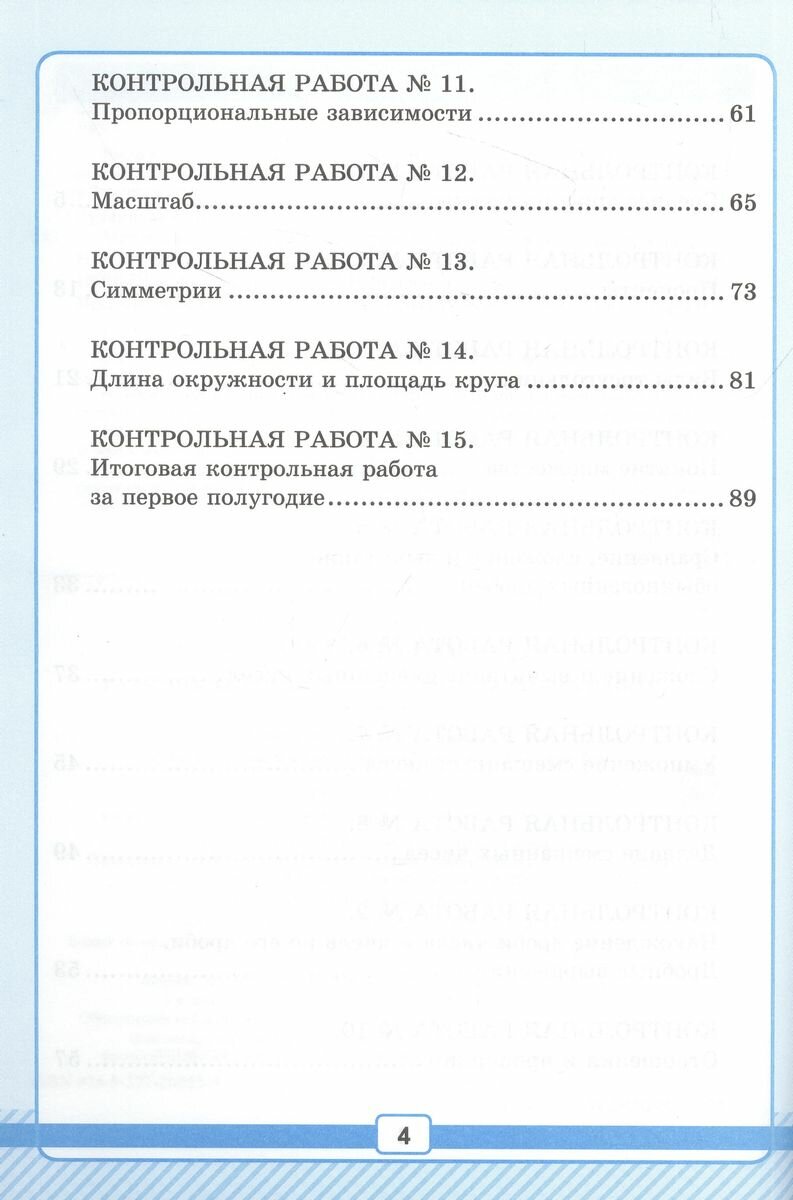 В сборнике представлены тематические контрольные работы, предназначенные для первого полугодия учебного года. В конце первого полугодия проводится итоговая контрольная работа.