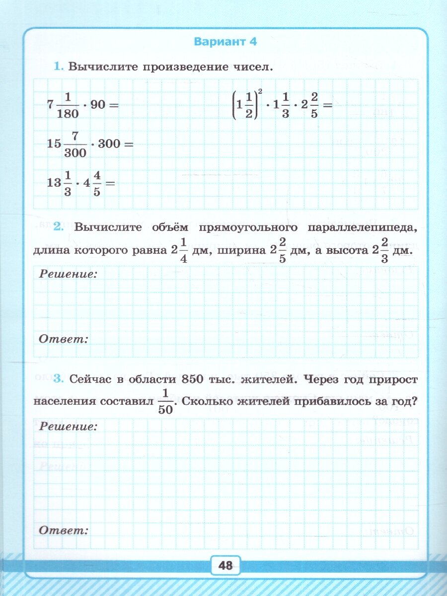 Каждая работа представлена в четырёх вариантах: первые два варианта— стандартного уровня трудности, третий и четвёртый варианты рассчитаны на классы учащихся с более высоким уровнем математической подготовки.