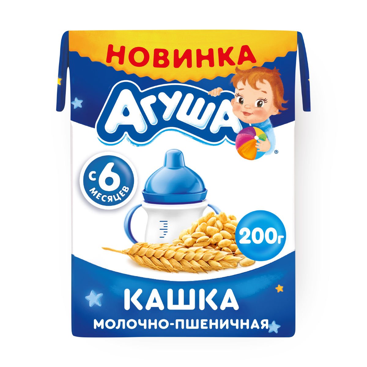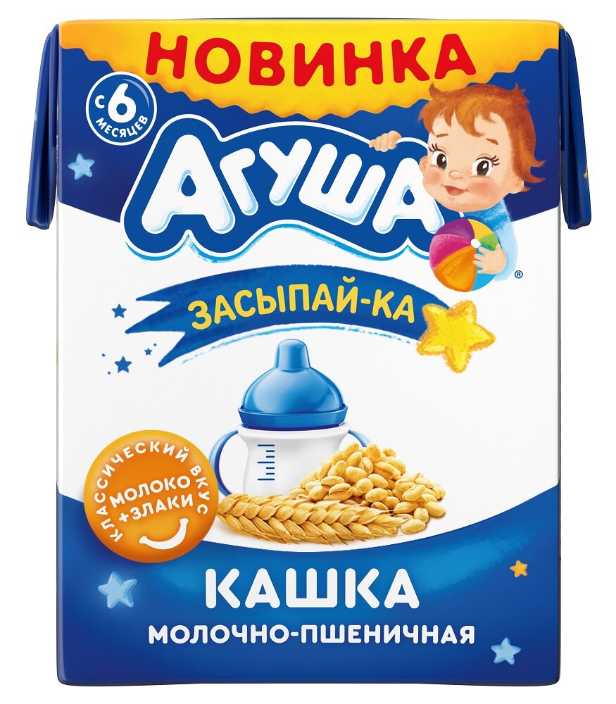 Каша молочная пшеничная Агуша "Засыпай-ка" стерилизованная с массовой долей жира 1,8% 190мл. Для питания детей старше 6 месяцев.